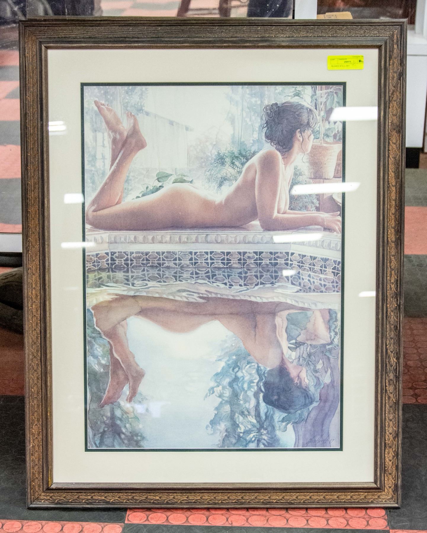 NUDE REFLECTED IN POOL. WOOD FRAME 27 X 36 INCHES