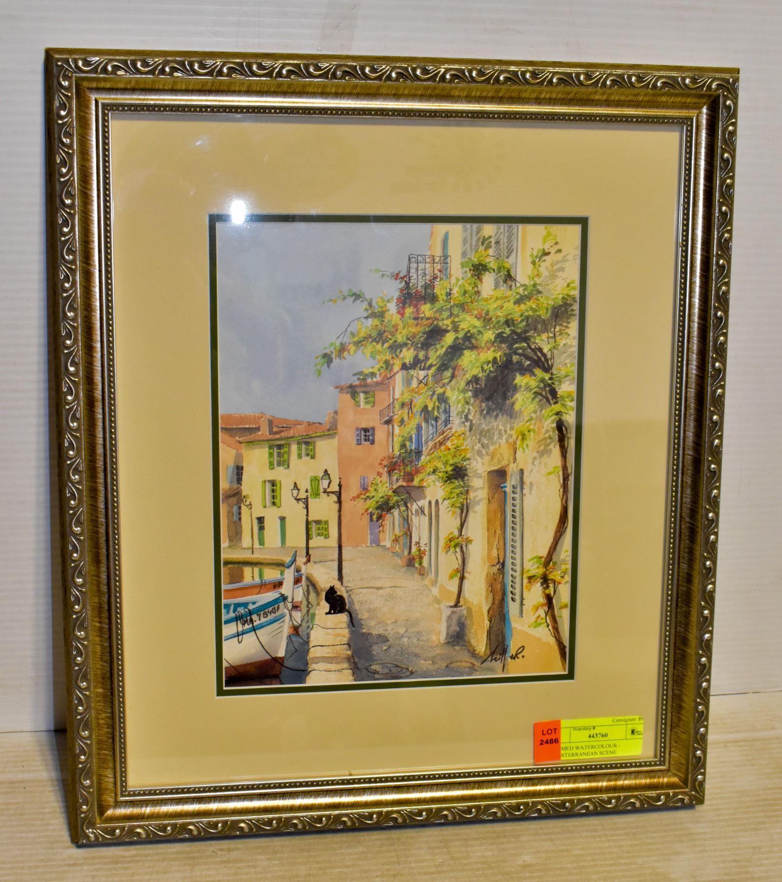 COLOURFUL HARBOUR SCENE. GOOD CONDITION. 15" X 18"