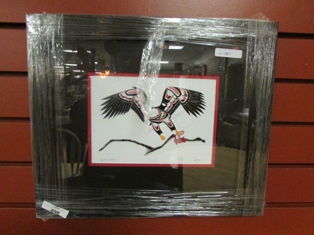 FRAMED WEST COAST NATIVE ART - "EAGLE & SALMON " - RICHARD SHORTY