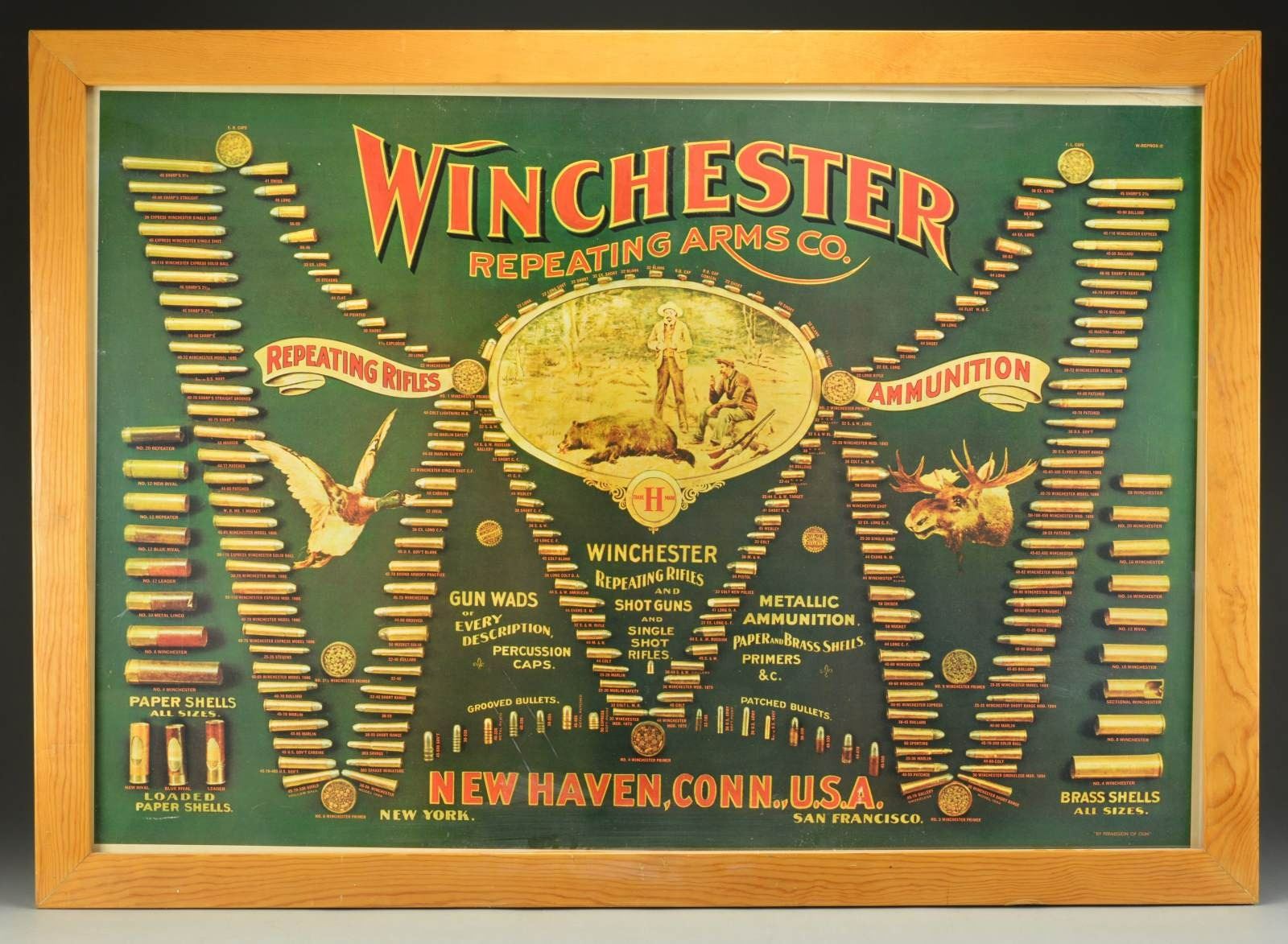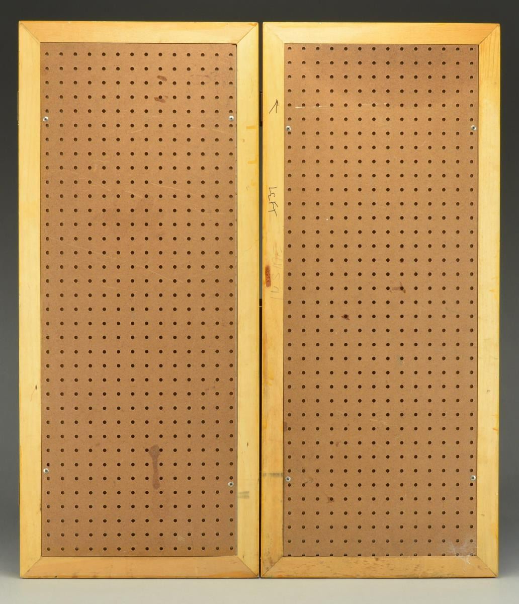 Frame measures approx. 56" x 40". Also included is 2 pegboard side panels measuring approx. 40" x 17". CONDITION: unable to remove backboard to inspect print, but appears good w/ creases, small tears & stains. Overall good w/ numerous impressions to backboard & handling marks to frame. (02-17772/MD). $300-500.
