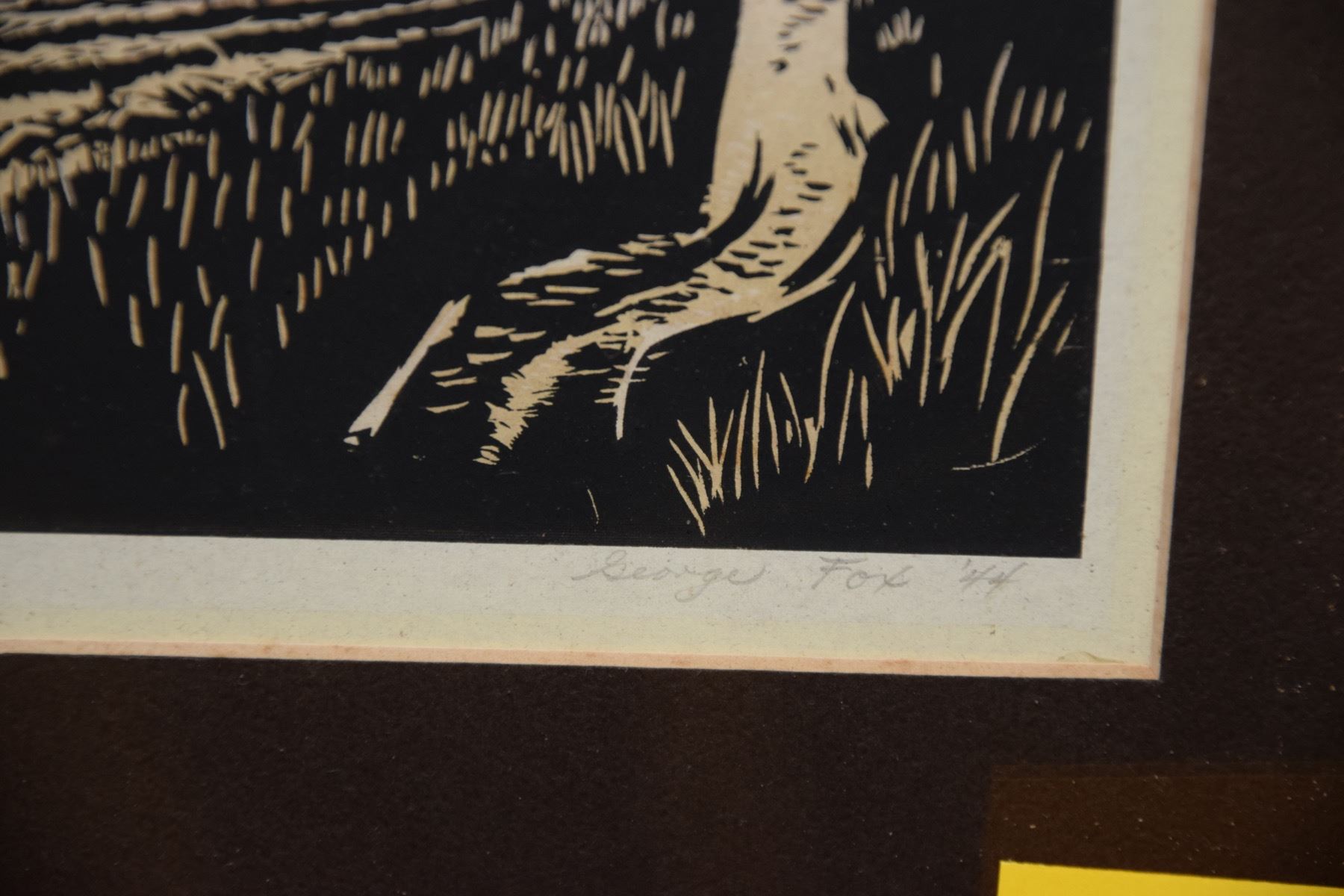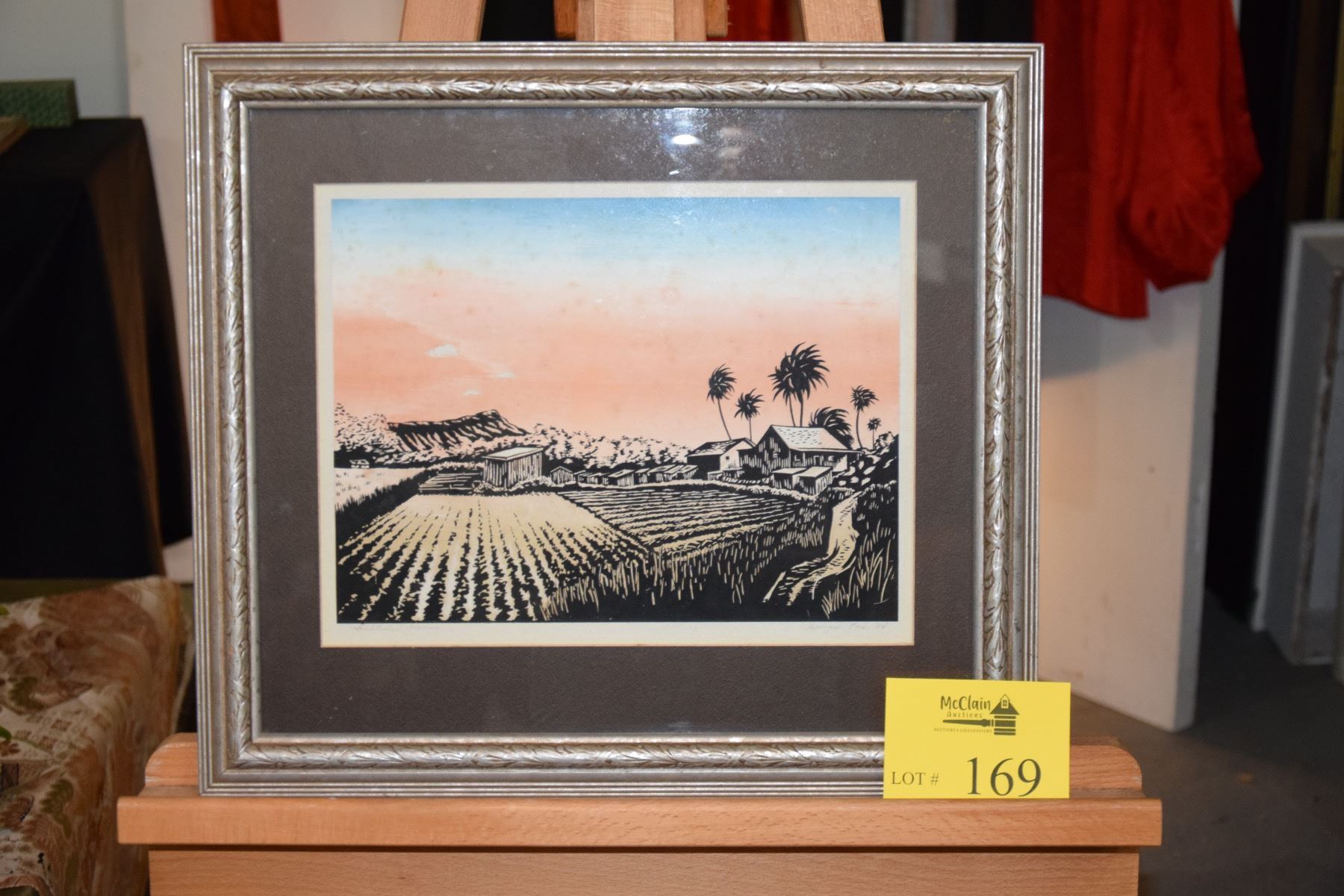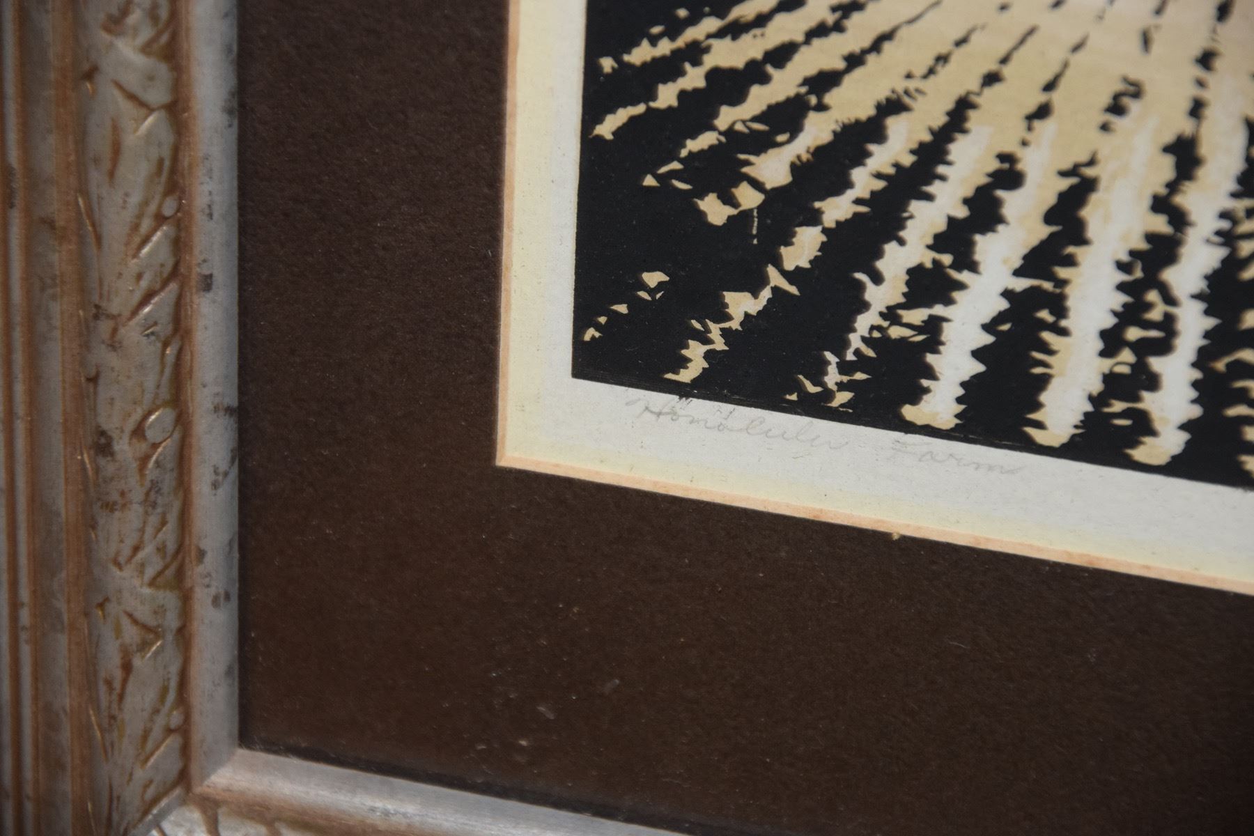 FRAMED WOODBLOCK PRINT, "HONOLULU FARM"; SIGNED GEORGE FOX 44'