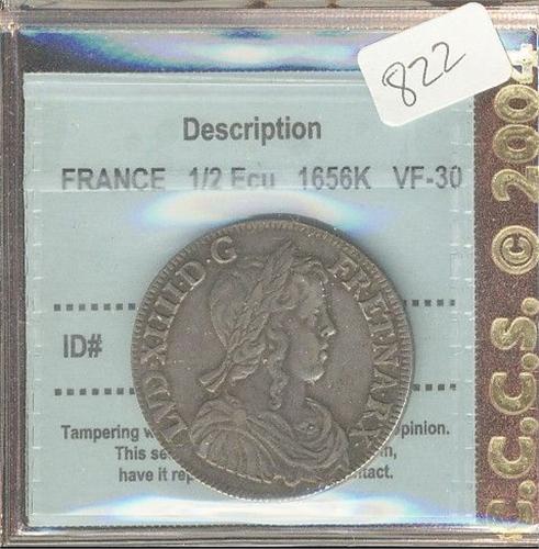 FRANCE 1/2 Ecu 1656K CCCS VF-30, a nice example.