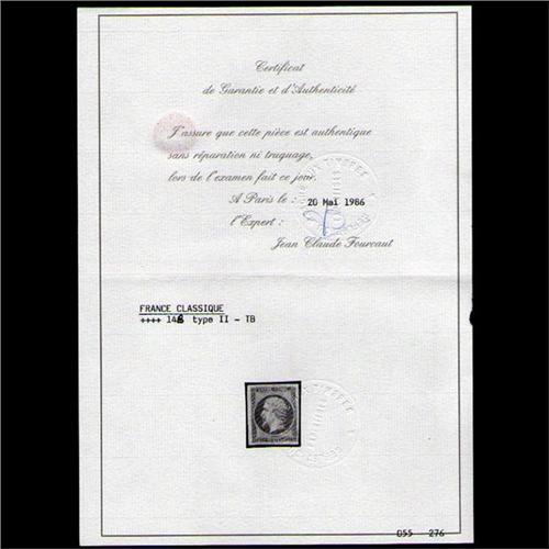FRANCE #15d (YVERT#14B TYPE II) XF-NH SIGNED CERTIFICAT