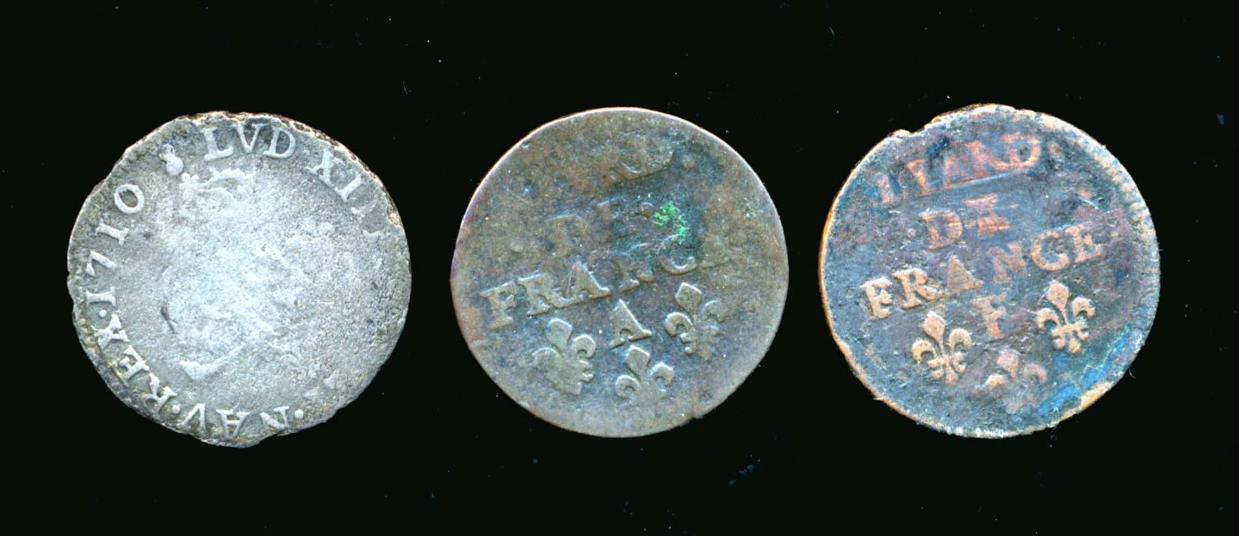 Drouliers # 692 1710 AA 30 deniers F, et DR.# 708 1656 et 1657 A VG-F.