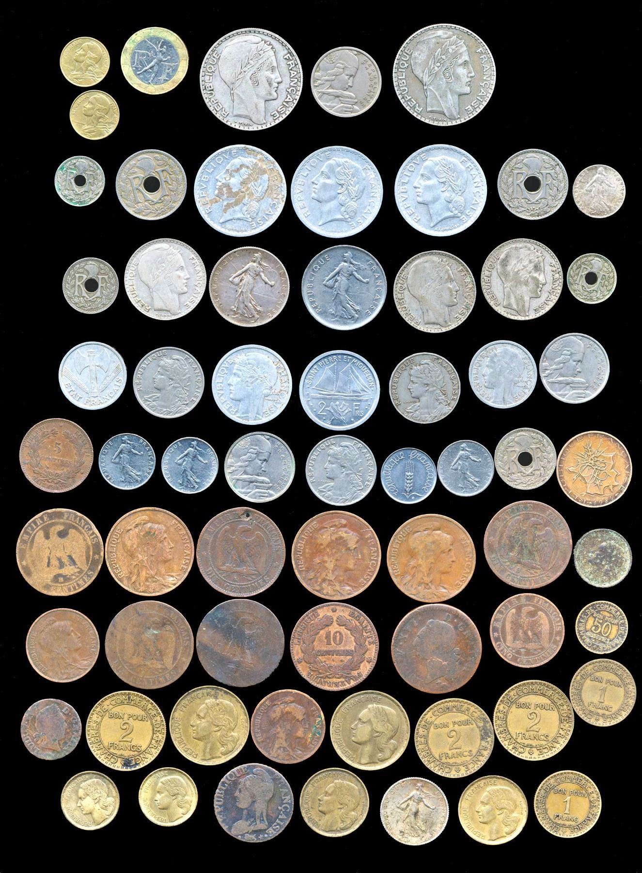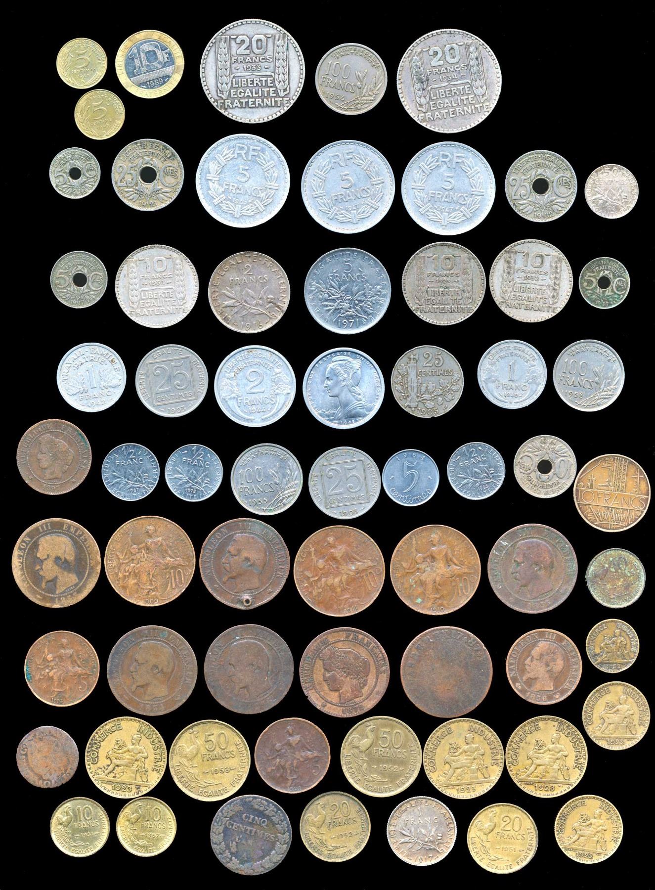 FRANCE 1787-1989. A Mixed Lot of 65 Coins Very Good-Unc