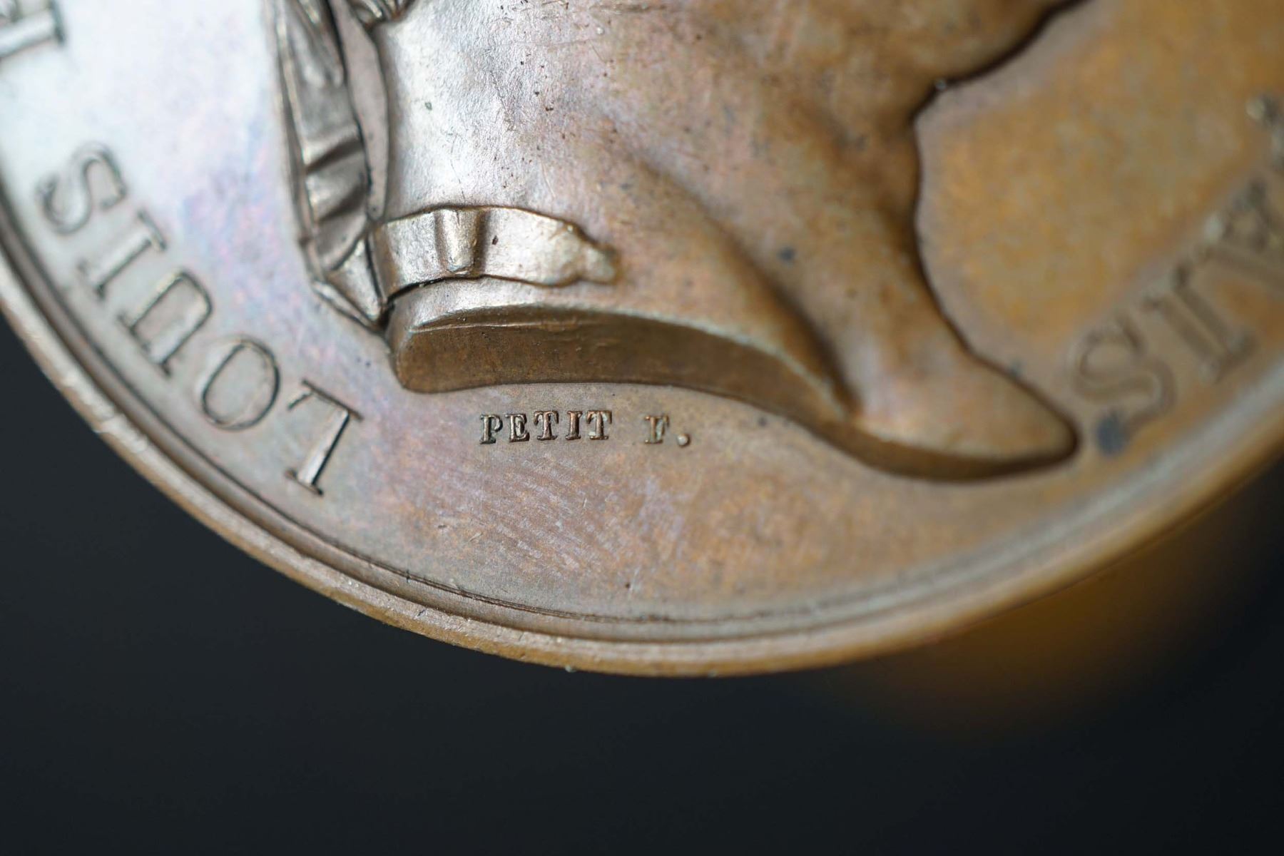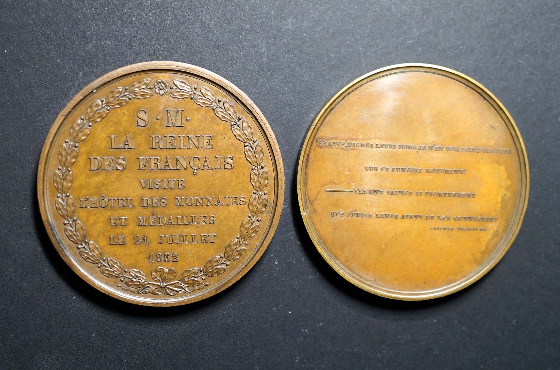 1830 Allegory to Fallen Frenchmen by Caque AE-51 54.6 gms. Edge: Plain Reverse: A verse by Casimir Delavigne and 1832 Queen's Visit to the Royal Mint by Petit. AE-51 59.3 gms. Edge: Plain EF w/ a few rim dings.