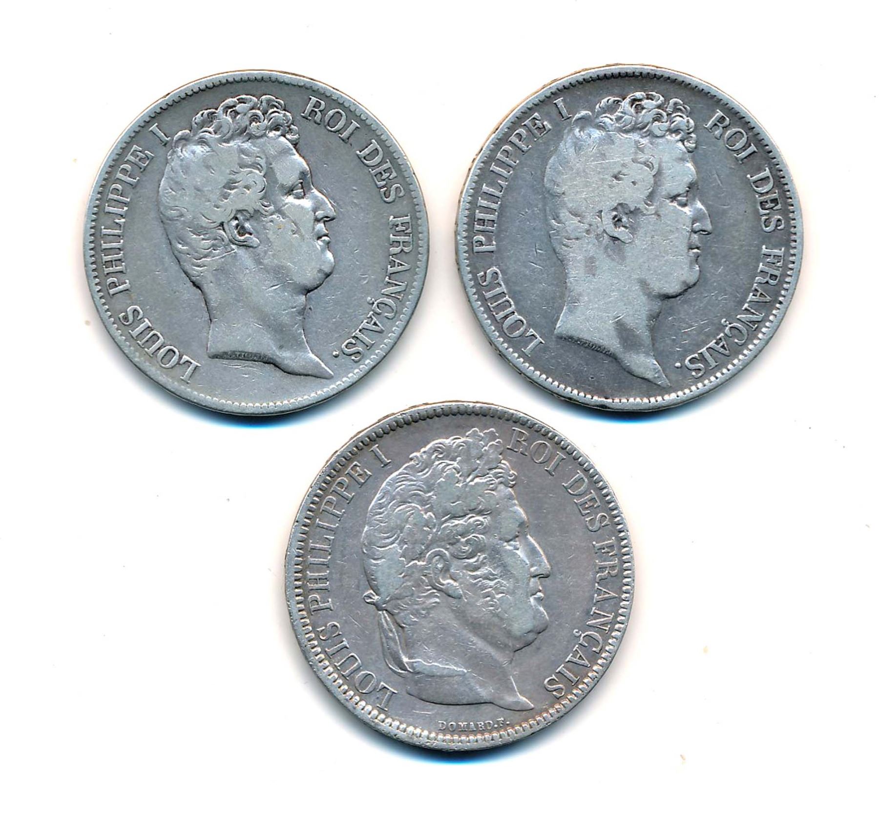 FRANCE 1831 Trois pièces de 5 francs de Louis-Philippe 1er 75 grammes d'argent .900