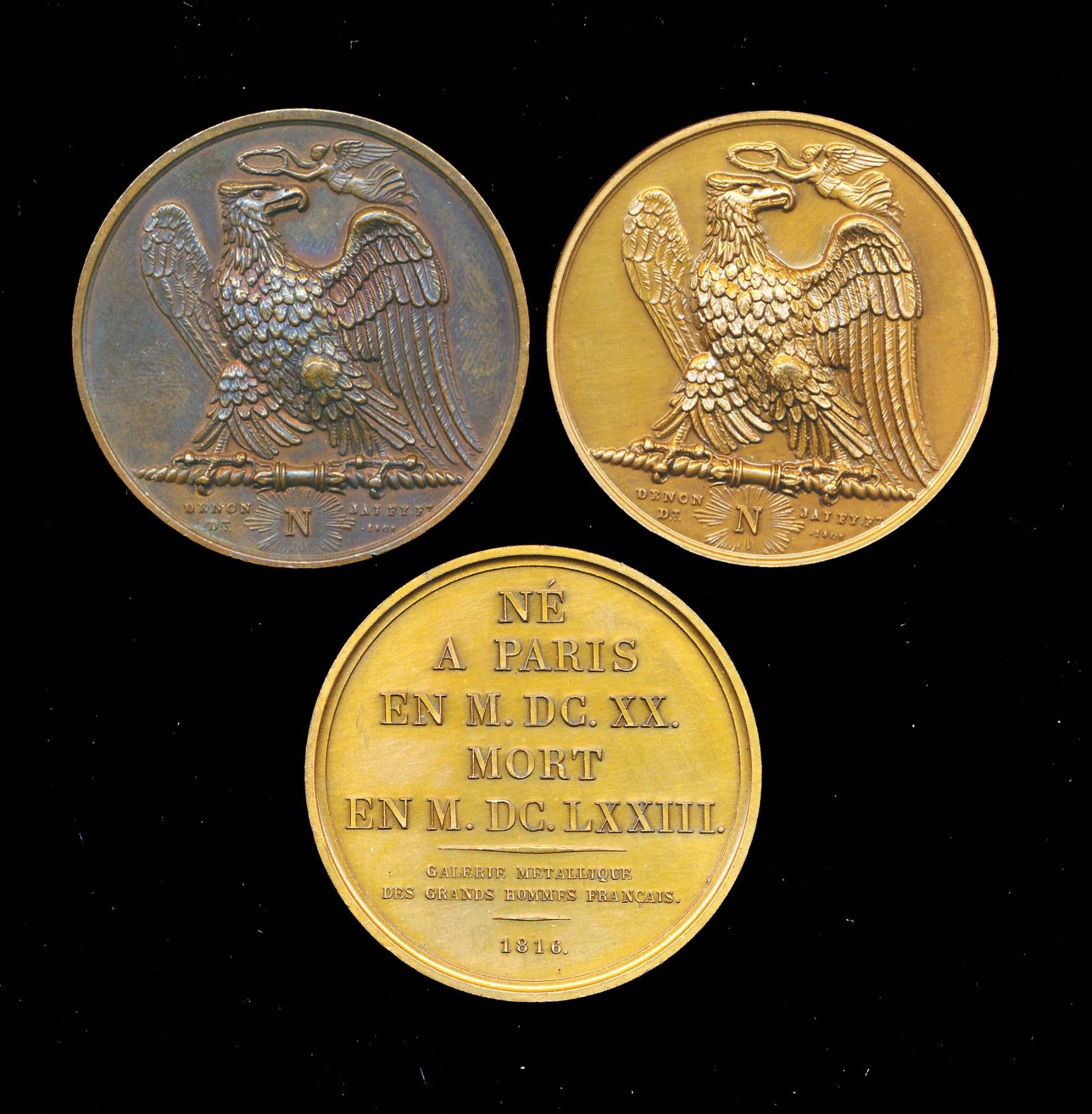 1 x Poquelin de Moliere by Gayrand AE-41 w/ original round box Unc, 2 x Napoleon I Cornation AE-41 by Andrieux Bright bronze and antique bronze VF-EF