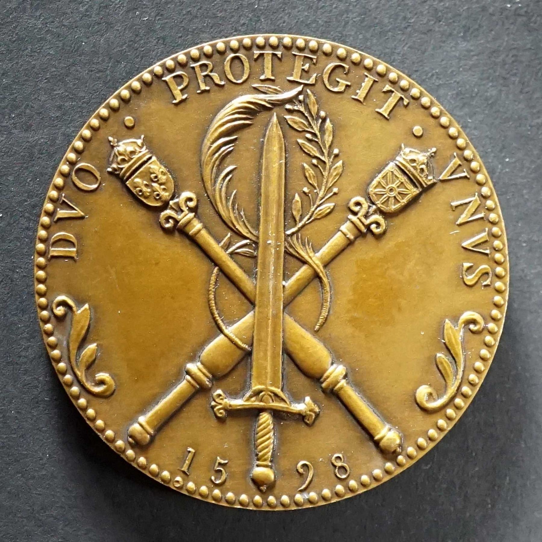 FRANCE Bronze Medal : 1598 Henri IV with Sword on reverse