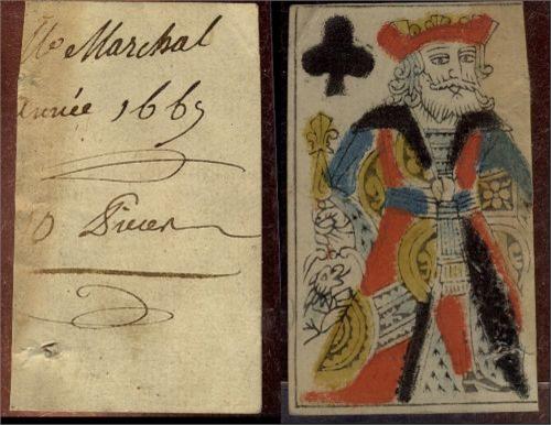 FRANCE; CARD MONEY issued in 1669, Rev; M. Marchal Annee 1669 10 S. Obv; King of club. VF for issue