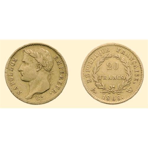FRANCE COINS 20 Francs 1808, Lille. Head left / Value. Gad. 1