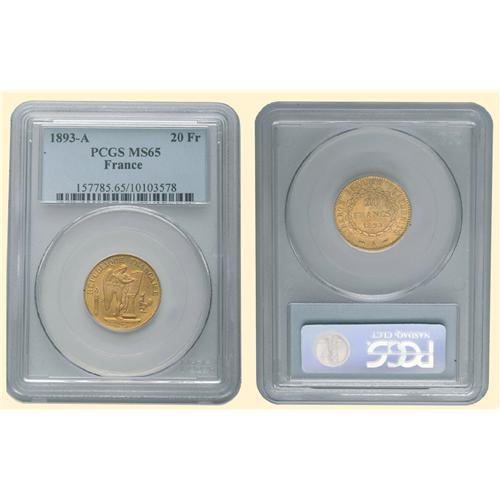 FRANCE COINS 20 Francs 1893, Paris. Genius / Value and year i