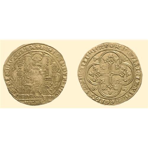 Ecu d`or (4.5 g). Lion with sword and shield on throne / Floriated cross in quadrilobe. Friedberg 270.