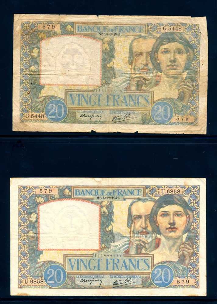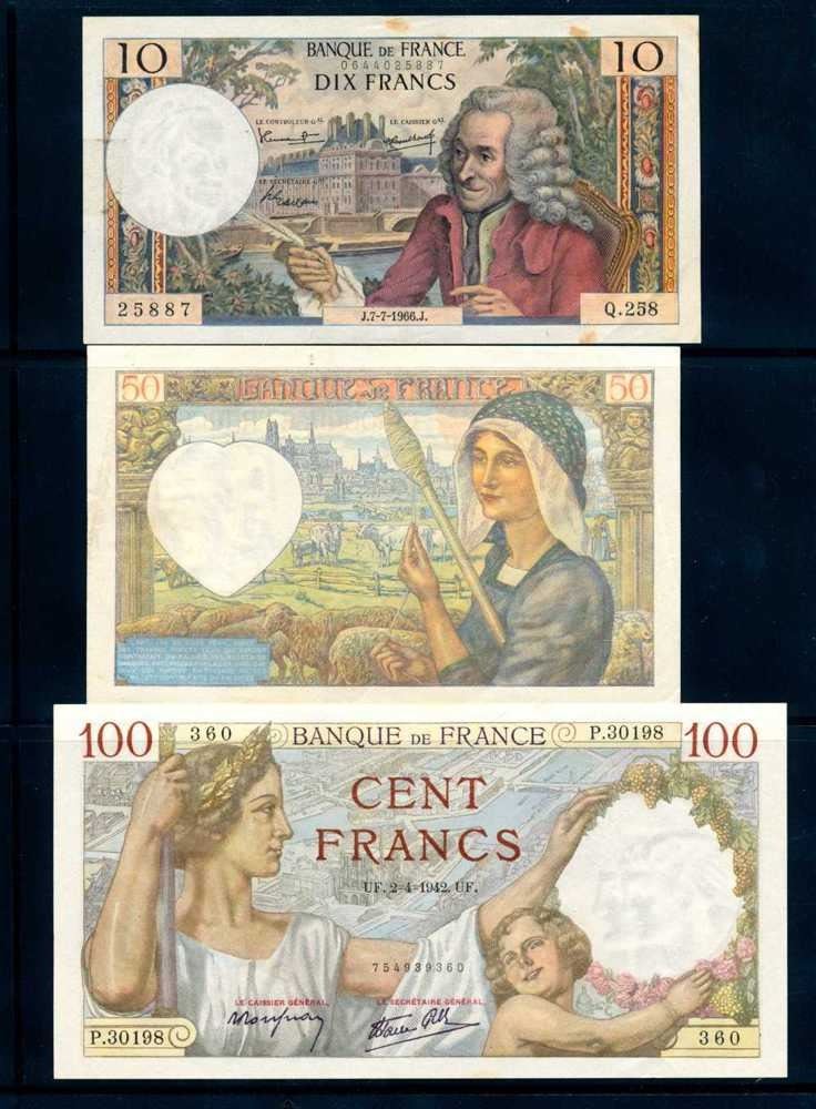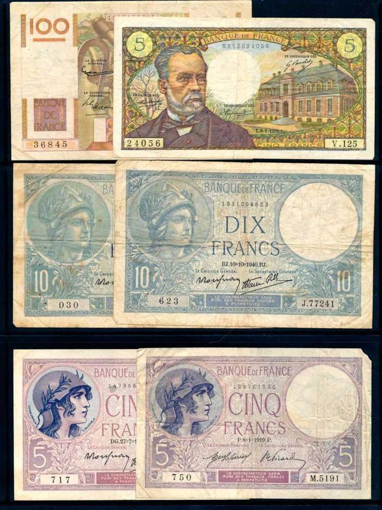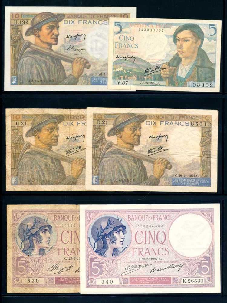 Lot a Etudier provenant d'une ancienne collection. Les billets ont pris l'humiditE et certains incirculEs sont un peu voilEs, l'Etat gEnEral est bon.