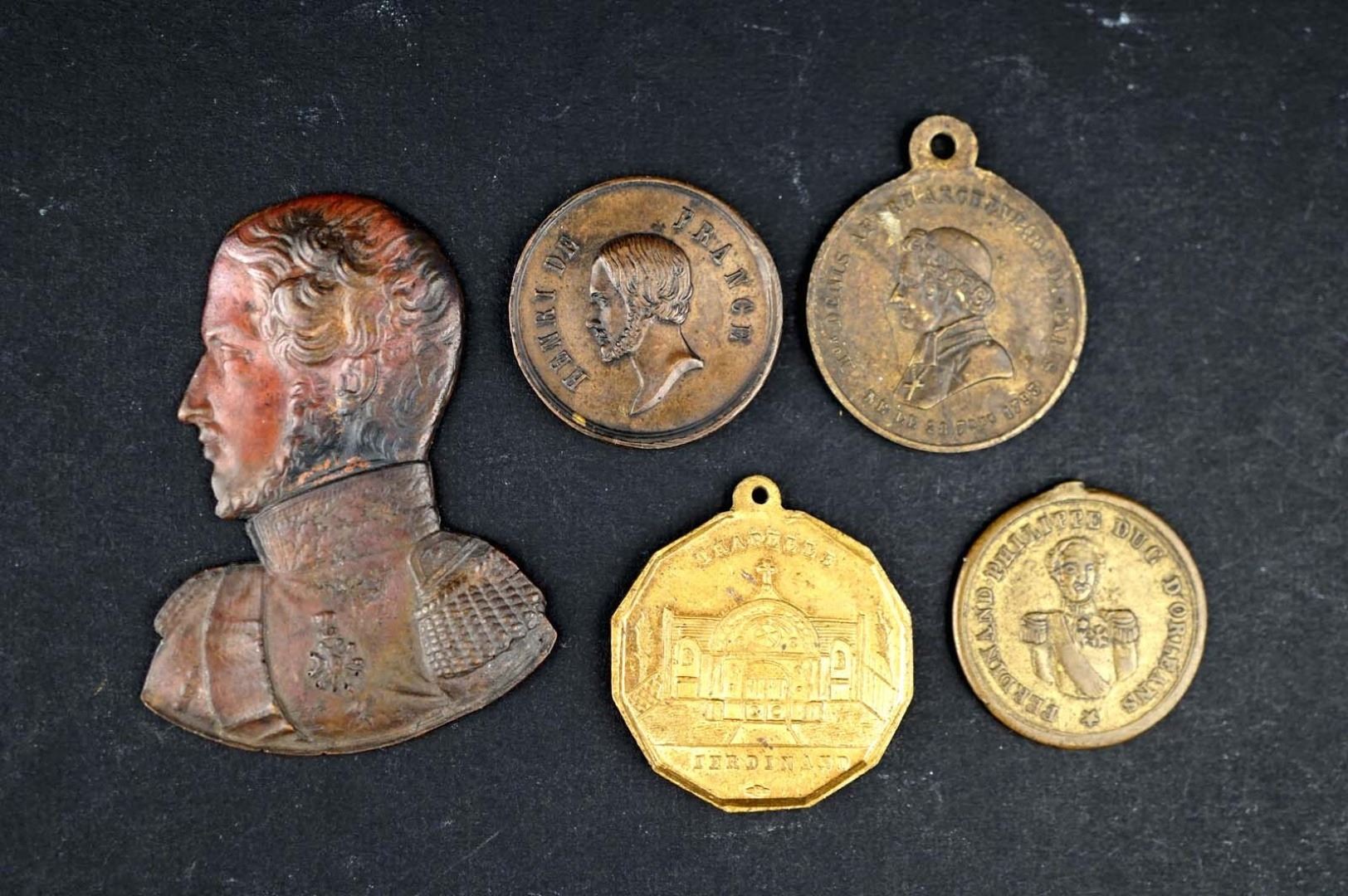 FRANCE Lot of Four Medalets, one Copper Cut-out, Mid 19th Cent.