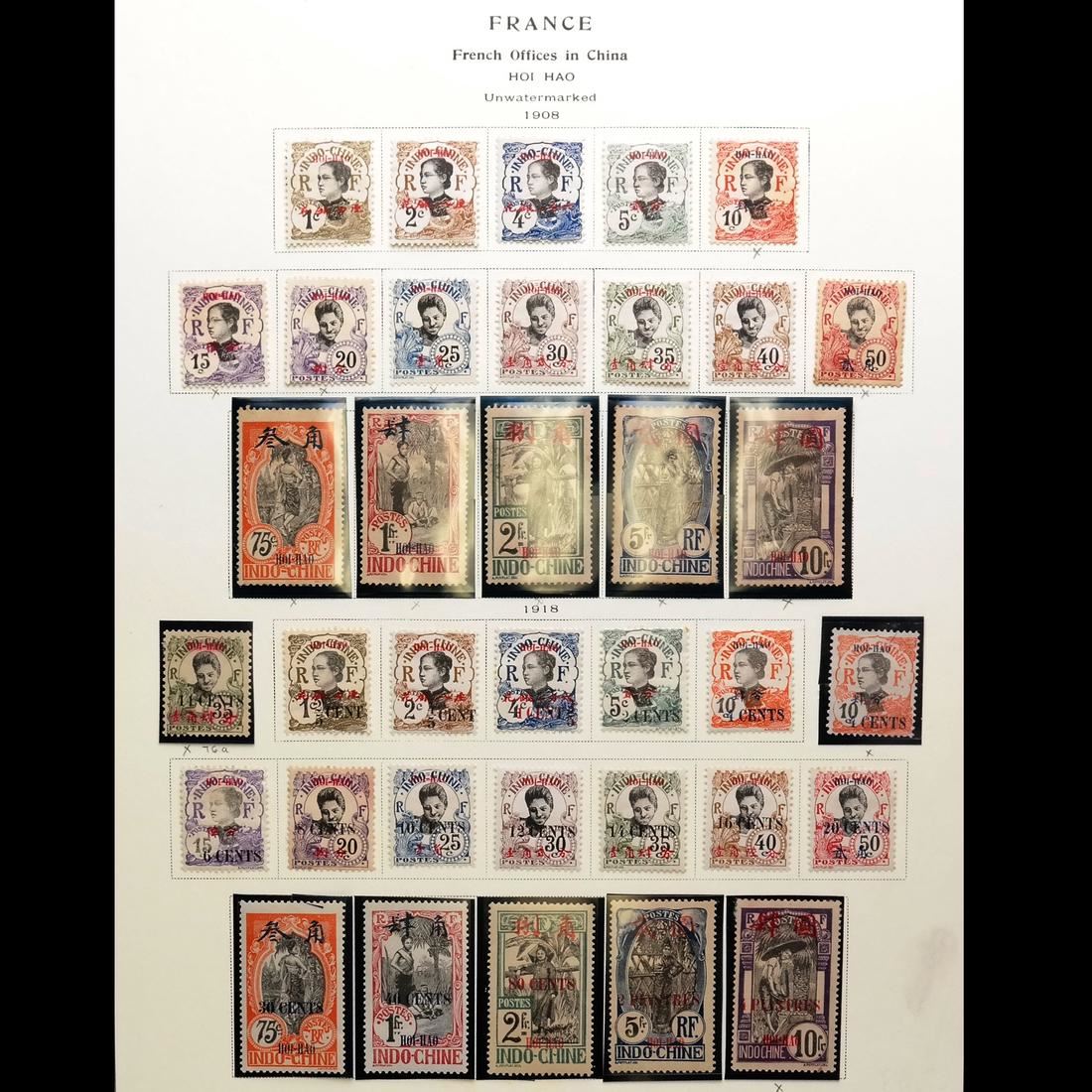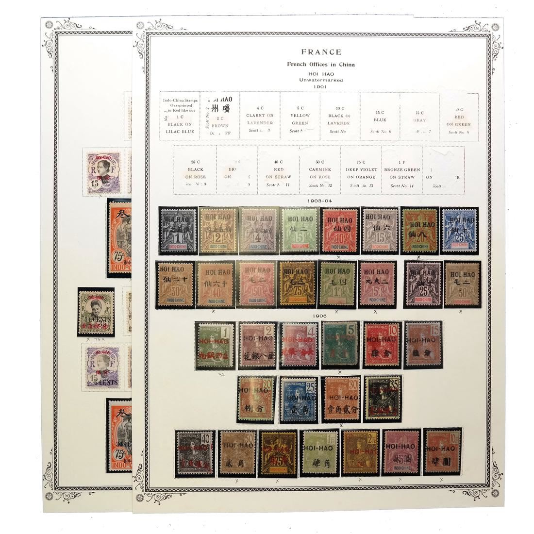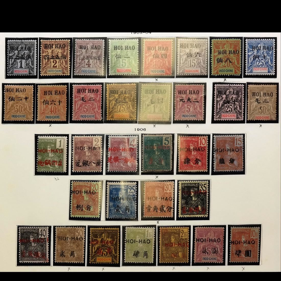 Collection of mint stamps housed in hingeless mounts on 2 Scott album pages, noted Scott #26 without gum, #27 mint, #28 without gum, #29 mint, #30-31 without gum (both signed Champion), #44-48 without gum (1Fr mint), #61-66 without gum, #76a without gum, #67-83 mint, and #84 without gum, sound and F-VF. Scott $2,104.