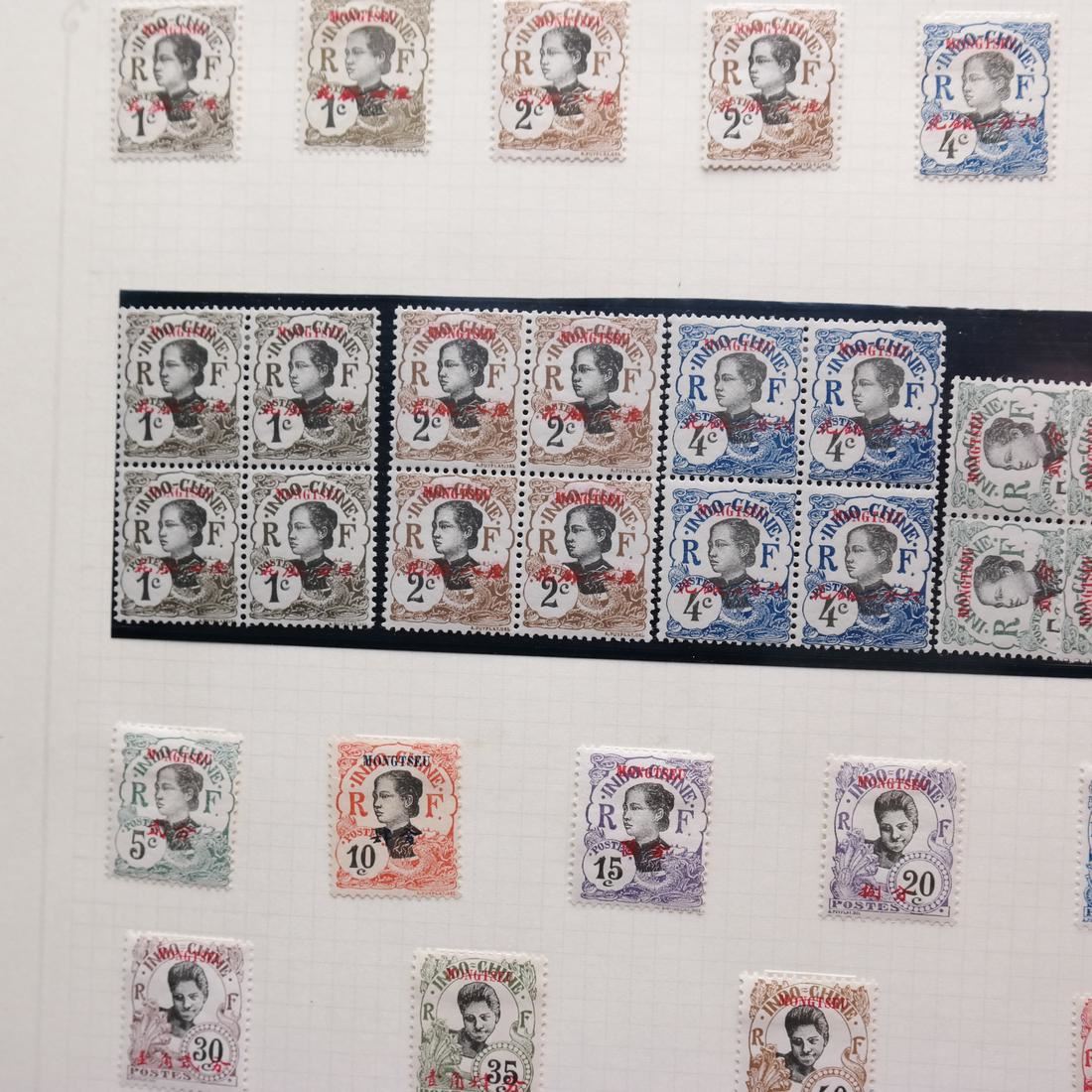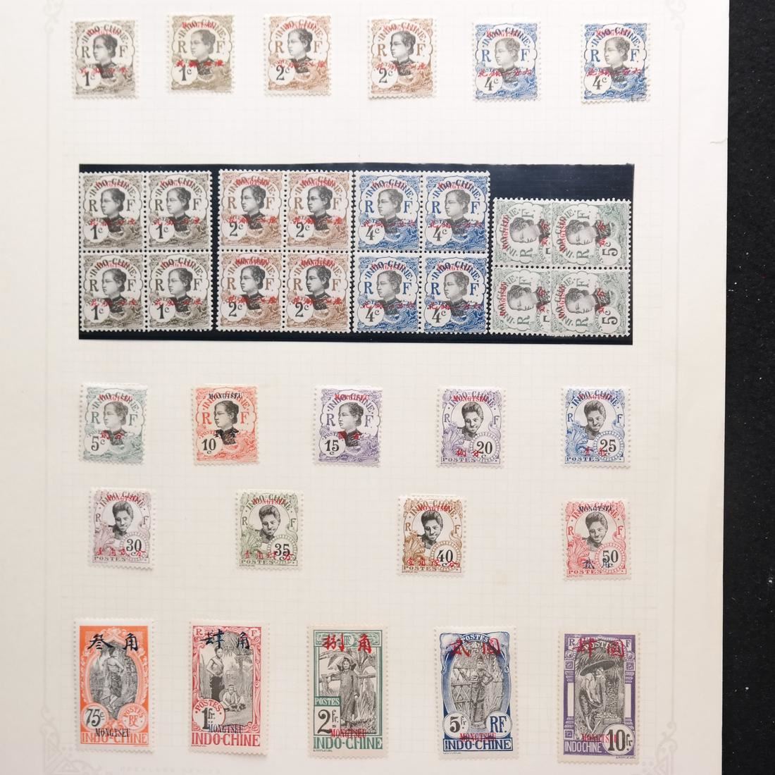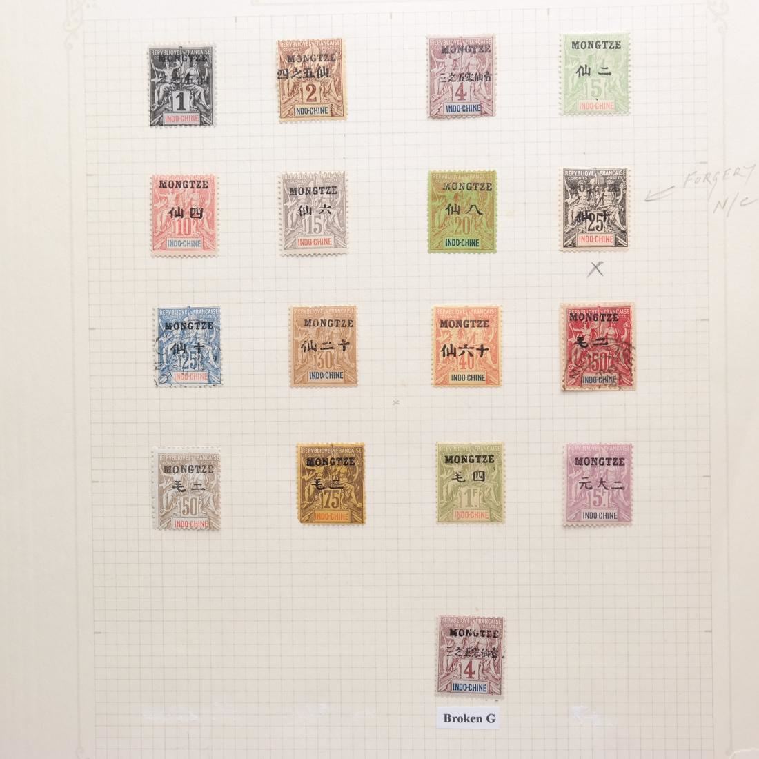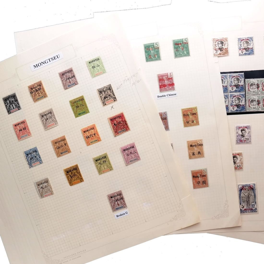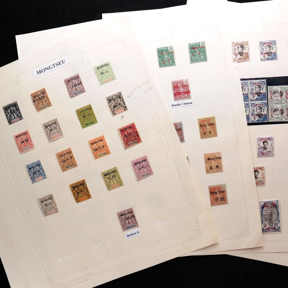Collection of mostly mint and some used stamps mounted on 4 quadrille album pages, noted Scott #10 mint, #11 used on piece, #12-15 mint (5Fr signed Roumet), #16-32 mint with shades and spacing varieties, #33-50 mint, and #67 mint, sound and F-VF. Scott $2,398.