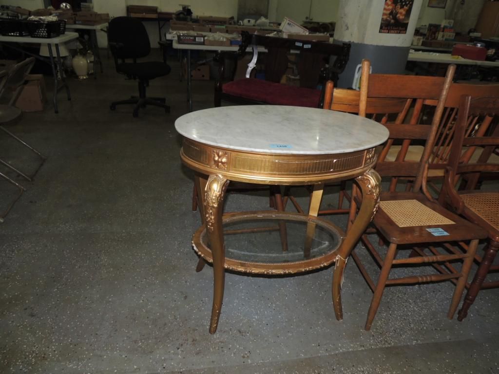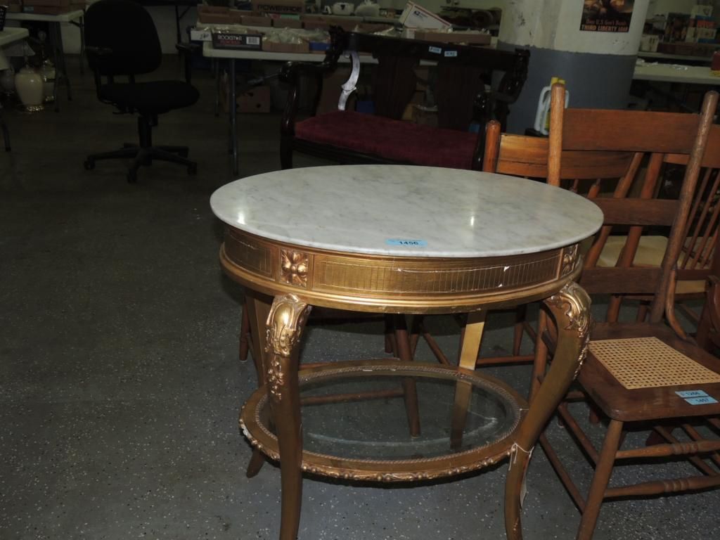 FRANCE EARLY 1800 OVAL PARLOR TABLE WOODEN GESSO GILT MARBLE TOP. AS SHOWN. SEE PHOTO FOR MORE DETAILS.