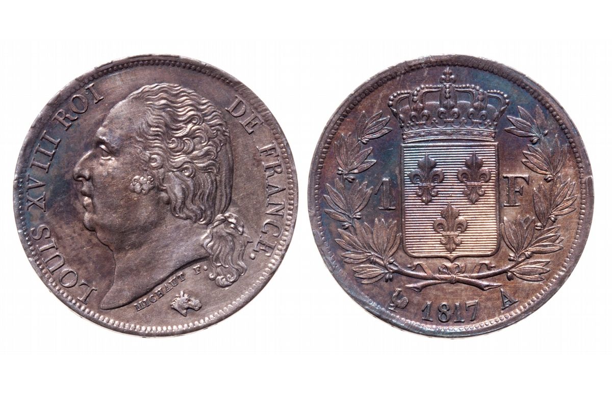 FRANCE. One Franc. 1817-A. KM#709.1. Good Extra Fine.