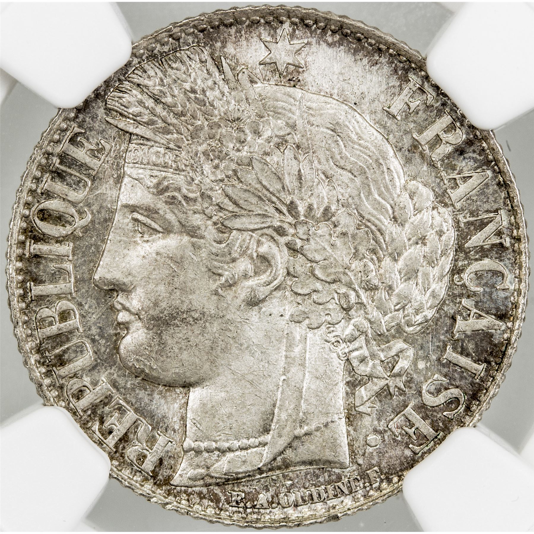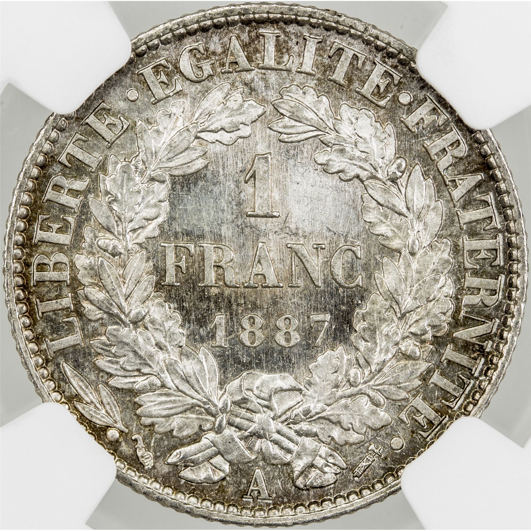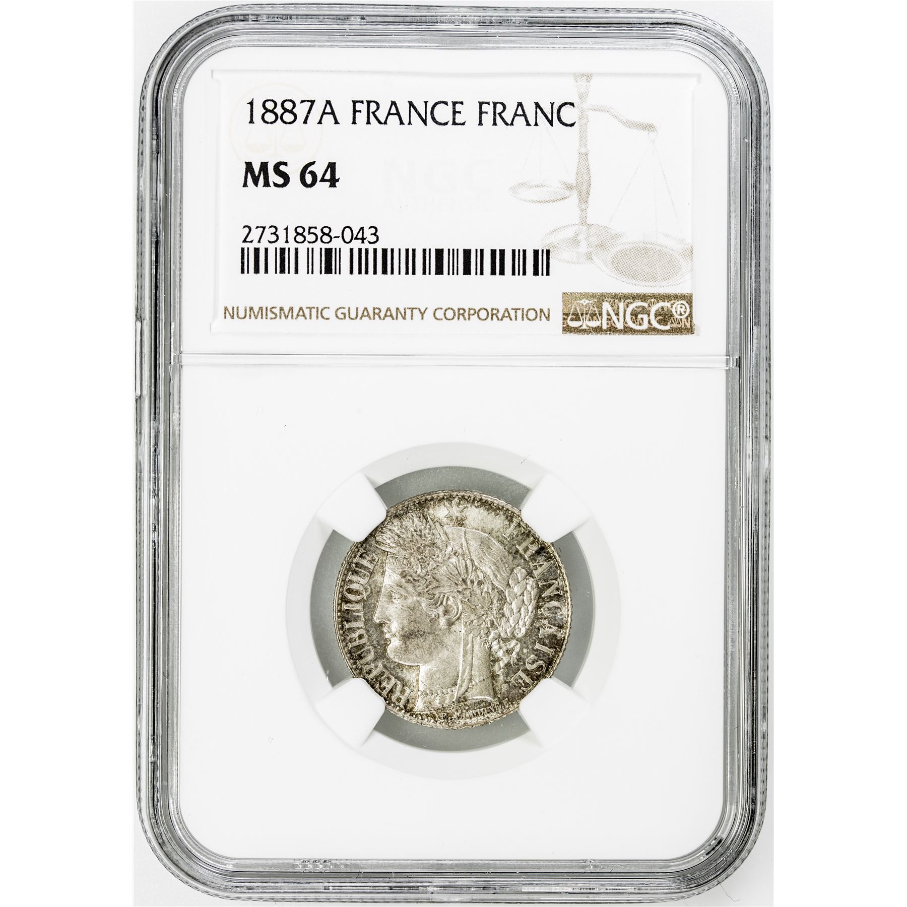FRANCE: Third Republic, AR franc, 1887-A, Y-49.1, NGC graded MS64.