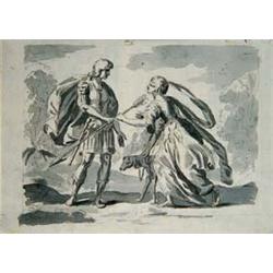 FRANCESC RODRIGUEZ Y PUSAT ( Barcelona, 1767 - 1840) "Céfalo y Procris" "Esau vende a Jacob su primogenitura por un plato de lentejas" Dibujo por las dos caras . Tinta y aguada gris preparado a lápiz. 25 x 36 cms. Sin marco.