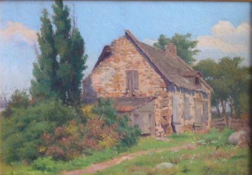 FRANCHÈRE, Joseph Charles, A.R.C.A., 1866-1921. "Maison de Ferme Abandonnée". Huile sur panneau, signée. Oil on board, signed. Provenance: Walter Klinkhoff Gallery, Montreal. Galerie D'Art Michel Bigué, St. Sauveur, Québec. 10" x 14" - 25.4cm x 3