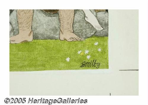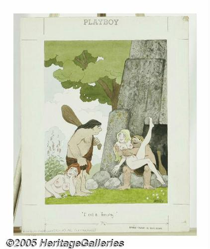 <B>FRANCIS WILFORD SMITH (American b.1927)</B></I> <BR>Original Cartoon Illustration <BR>Playboy, February, 1973 <BR>Caption: 'I call it 'fore-play!' <BR>Ink and watercolor on illustration board <BR>12.5in. x 9.5in. (sight size) <BR>Signed lower right: Smilby <BR><BR>This cartoon was exhibited in a traveling exhibition through Germany, titled <I>Cartoon Klassiker</B></I> in 1999. <BR>