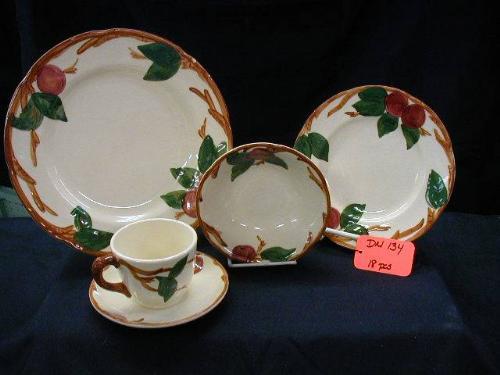 FRANCISCAN APPLE SET INCLUDES (2) 10 5/8in PLATES (1 W/CHIP), (6) 6in BOWLS, (6) 8in BREAD PLATES (SEVERAL W/CHIPS), (6) CUPS, 20 PCS