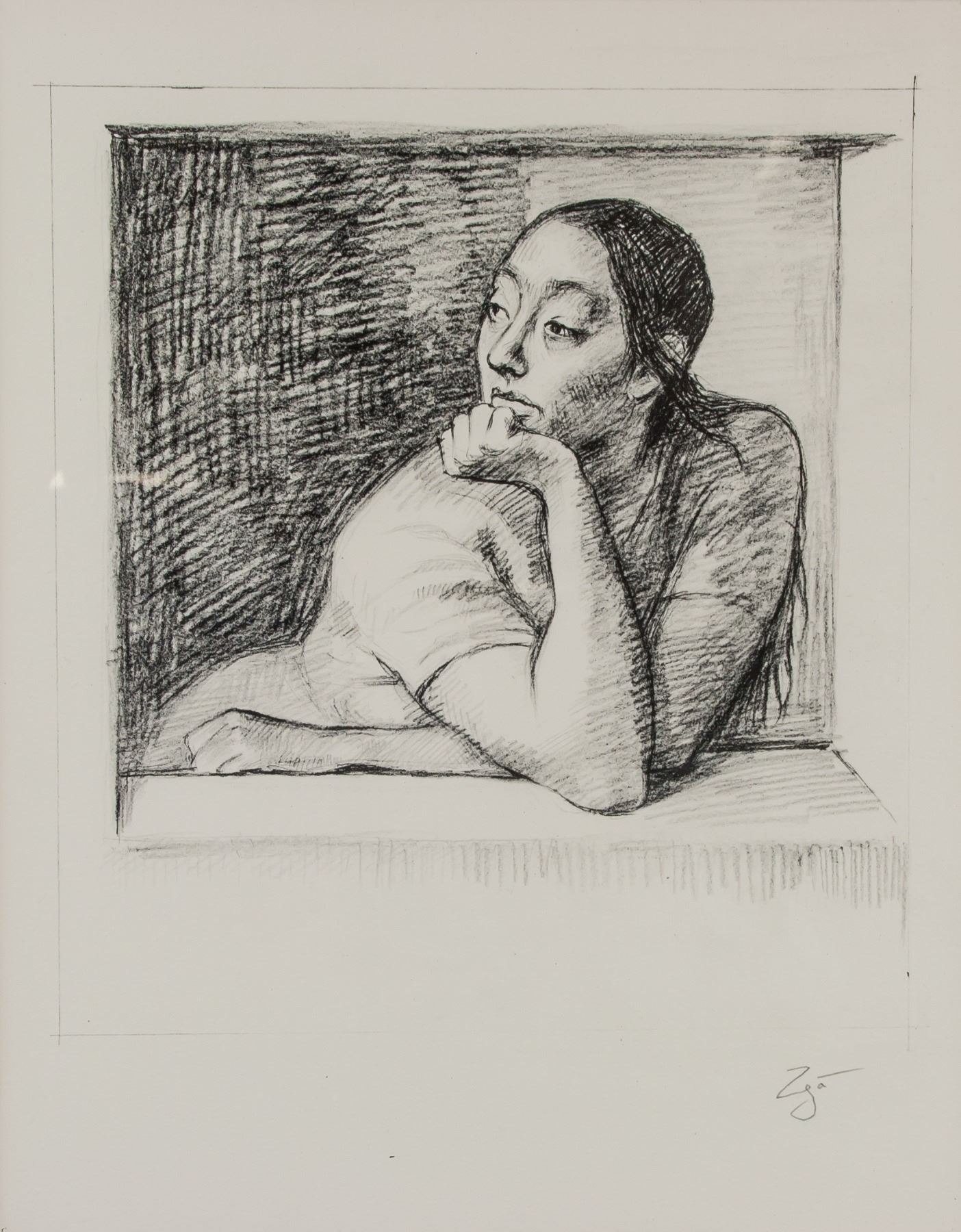Graphite on paper. Sketch of a portrait. Signed and attr. Francisco Zuniga (Mexican, 1912-1988). 14.6 x 11.4 in. (37 x 29 cm). Francisco Zúñiga was a Costa Rican-born Mexican artist best known for his stylized figurative paintings and sculptures. Zúñiga’s work often adopts qualities of pre-Columbian art, especially in his stone sculptures which strive to maintain a timeless, mysterious quality in their boldly simplified forms. Most of his work depicts female figures either as nudes within natural environs, or as contemporary women walking through the markets of Mexico. Born on December 27, 1912 in Barrio de San José, Costa Rica, both of his parents were sculptors. Zúñiga was deeply influenced by the German Expressionists and the sculptor Auguste Rodin early in his artistic development. Today, his works can be found in the permanent collections of the Metropolitan Museum of Art in New York, the Museo de Arte Moderno in Mexico City, and the Hirshhorn Museum and Sculpture Garden in Washington, D.C. The artist became a Mexican citizen 50 years after his arrival to the country, and died on August 9, 1998 in Tlapan, Mexico.
