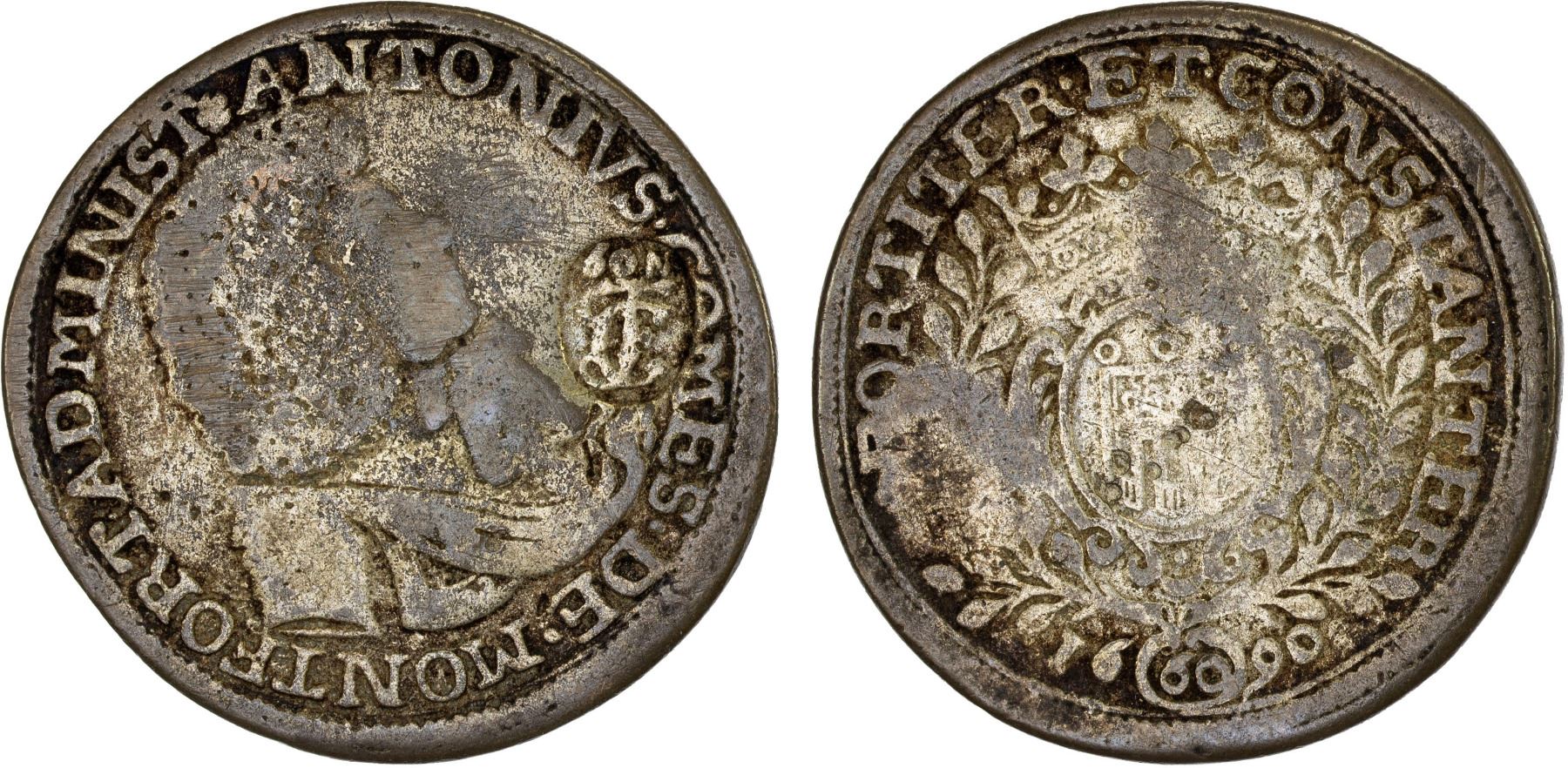 FRANCONIAN CIRCLE: Imperial Circle, 60 kreuzer (12.75g), ND (1693-5), as-KM-30.4, likely contemporary imitation of Franconian Circle countermark on imitation of 1690 Montfort 60 kreuzer (KM-77), silver-washed billion or bronze, Fine on VG host, ex Almer H. Orr III Collection.