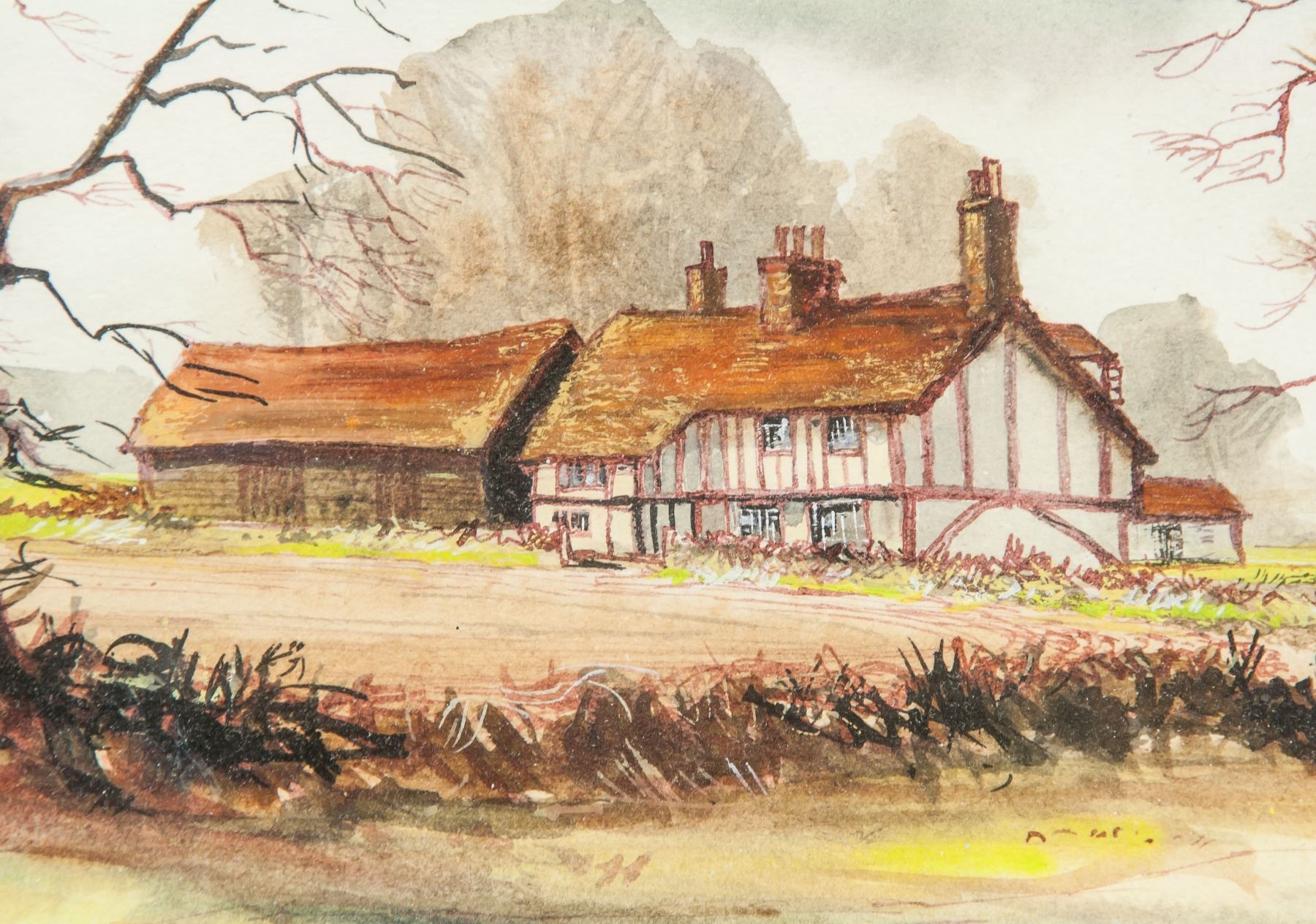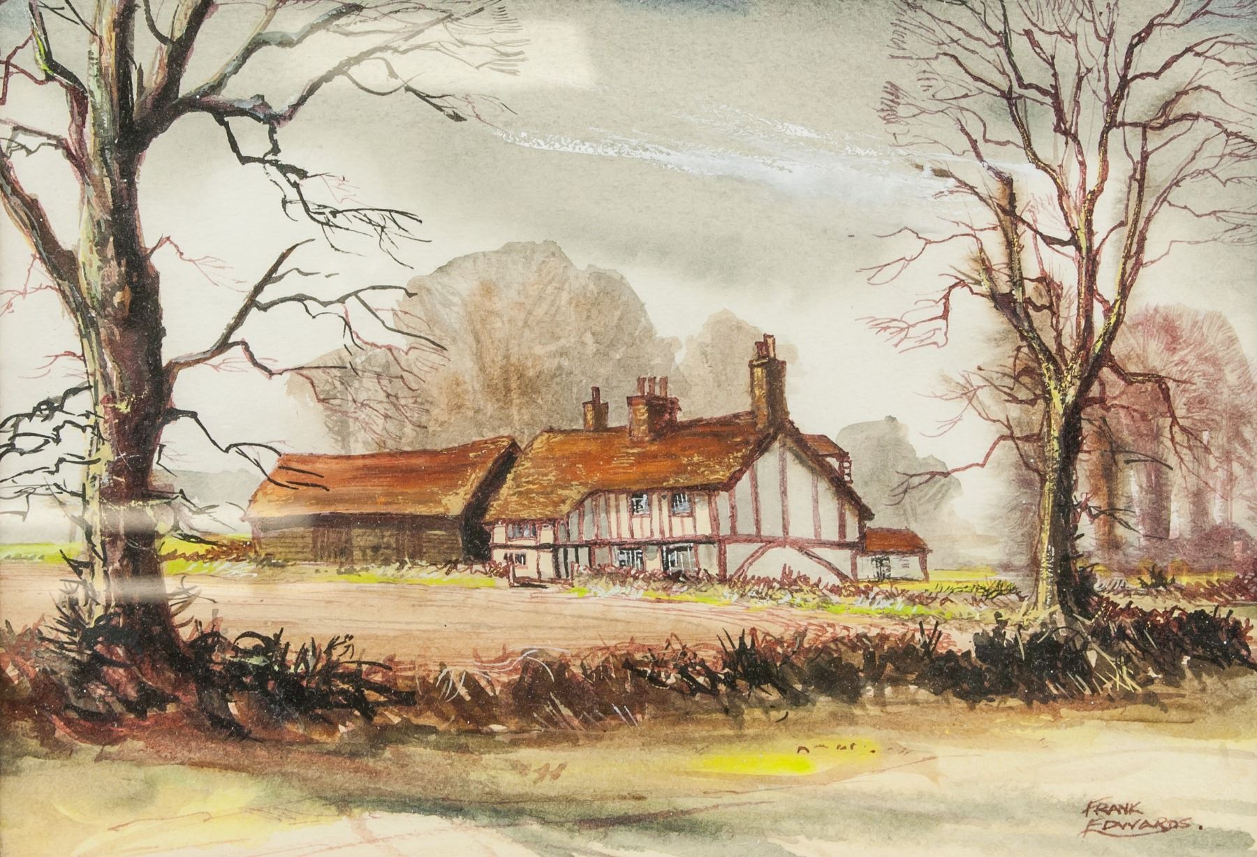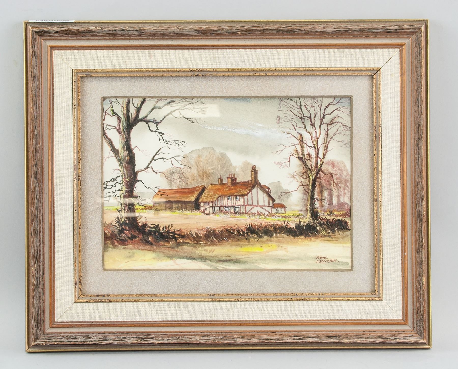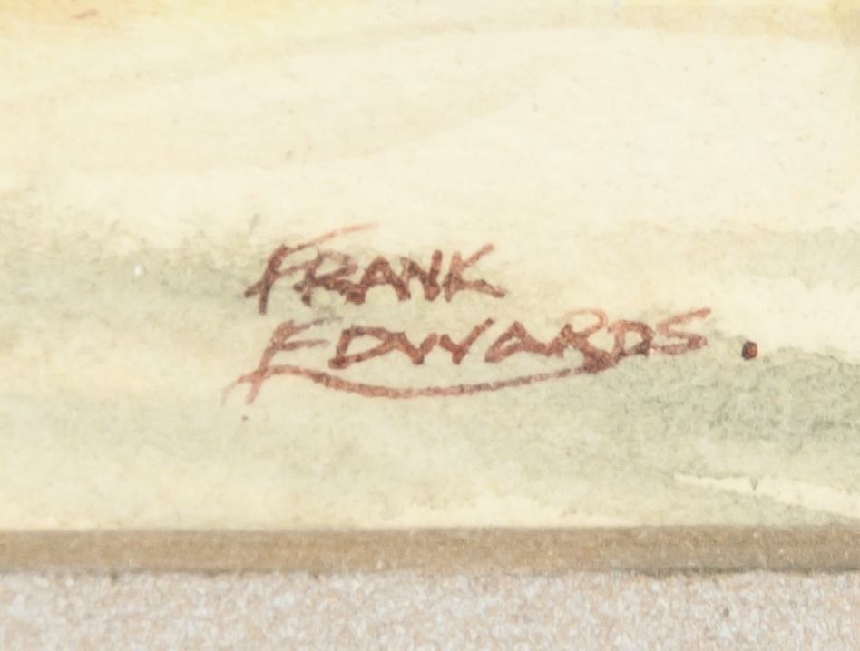 Watercolor on board. Featuring landscape scene. Signed and attr. Frank Edwards. 6.7 x 9.8 in. (17 x 25 cm)