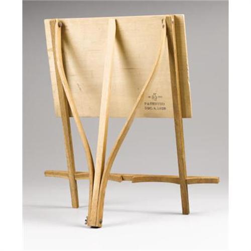 <B>FRANK REAUGH (1860-1945)</B></I><I><BR>Frank Reaugh Portable Lap Easel</B></I>, 1928<BR>Wood<BR>19 x 18 inches (48.3 x 45.7 cm) (folded)<BR>Stamped with the Frank Reaugh palette log<BR><BR> Frank Reaugh manufactured and marketed his own hexagonal-shaped pastels blended to color match the flora and fauna of Texas, special coated papers for use with his pastels, and his patented "lap easels" to artists all over the Southwest.<BR><BR>Provenance:<BR>Estate of Reveau Bassett<BR>Acquired from the above by the present owner<B>Condition Report:</B> Excellent condition.<BR><BR><b>Shipping:</b> Requires 3rd Party Shipping (<a target="_blank" href="http://www.heritageauctions.com/common/shipping.php">view shipping information</a>)