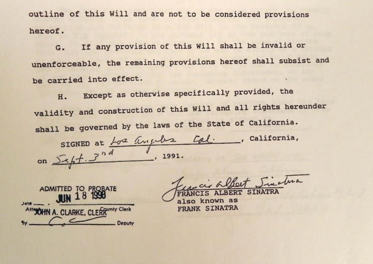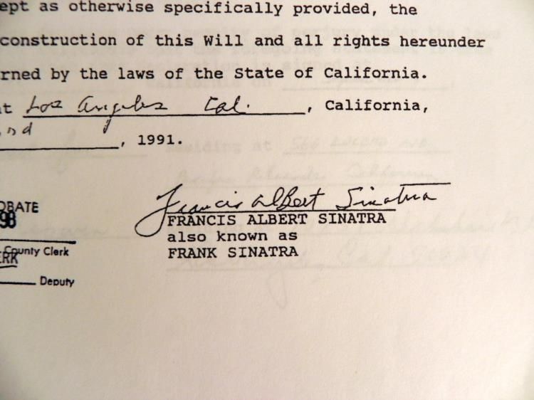 FRANK SINATRA'S LAST WILL & TESTAMENT & COMEBACK LP "TRILOGY"---FULL 31 PAGE WILL OF FRANK SINATRA (COPY) WITH HIS SIGNATURE DATED/FILED 1998-WITH ALL LEGAL RECORDED FILINGS-ON LEGAL SIZE PAPER--ALSO HIS 3 RECORD COMEBACK LP "TRILOGY" CHRONICLING HIS LIFE IN SONG IN THREE SEGMENTS