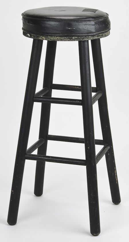 One of the greatest Frank Sinatra personality items one could obtain, the iconic four-legged black stool which he used at every concert at which he performed world-wide from 1985, until his last performance in Palm Springs on February 25, 1995. The custom-made stool bears several coats of flat-black paint and stands 31" tall overall and 14" x 14" at the base. It bears a 12" diameter cushion with round black bead trim, the cushion affixed to a circular piece of painted chipboard with a ball-bearing swivel fitted out of view so that the cushion can easily turn. The cushion bears a 4" x 2" repair made with black tape to the top surface. Fans of Sinatra (and film evidence) document the presence of the chair everywhere Sinatra publicly sang. As a matter of fact, Sinatra performed with only two items onstage: this stool and a microphone. The stool was usually used in his more melancholy, barroom ballads, or later, as Sinatra tired toward the end of a show. This relic, comparable to Michael Jackson's bejeweled glove, comes with sterling provenance. Three original letters of provenance accompany the lot. The first is signed by Carmel Malin, a professional concert violinist who performed with Sinatra for over 35 years. She recalls the chair: "...always being present, on stage, when Mr. Sinatra performed. He considered it part of his act...". The second letter is from Paul Malignaggi who is now Production Manager and Music Contractor for Frank Sinatra, Jr. and was Assistant Production Manager for Frank Sinatra since 1985 until his retirement. Malignaggi was with Sinatra on every one of his tours, domestic and international, and states that the stool "was used by him at every show and concert...he would undertake for the rest of his life." He concludes: "I was present at Mr. Sinatra's final concert performance (six songs) at Palm Springs in February, 1995, and the stool was present at that event as well. The stool bears a repair made to the seat with black 'gaffer's' tape - I made the repair myself in the late 1980s...". The third letter, the most significant, is from Henry Cattaneo, Sinatra's production manager who also produced Sinatra's last three albums. His letter of provenance reads, in part: "...[the stool] was made for Mr. Sinatra in the mid-1980s after he complained that his jacket would hang up on his old stool, and he could not easily turn to face the orchestra or the audience. This stool traveled with Mr. Sinatra to every show where he performed. It was also with him, and used by him, at his last commercial performance. Interestingly, Mr. Sinatra would always pick up and reposition this stool before every show, even if he moved it only an inch!...". Both Mr. Malignaggi and Mr. Cattaneo's signed letters bear photographs of the stool. Also present are two still photos from recent Youtube videos of 1989 and 1993 Sinatra concerts clearly showing the stool. Finally, there is a CD cassette case and descriptive insert from Sinatra's 2009 album Frank Sinatra Live at the Meadowlands", the cover showing Sinatra seated on this very stool. The insert is signed by the album's producer, Mr. Henry Cattaneo, who wrote the letter of provenance above. All three letters of provenance were dictated and signed before a representative of Alexander Autographs, Inc. at our offices and at the residence of Mr. Cattaneo. A great souvenir of "Ol' Blue Eyes"!