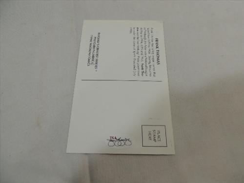FRANK THOMAS SIGNATURE AUTOGRAPH ON CARD. COA STICKER FROM JSA.. AS SOWN. VIEW PICTURE FOR DETAIL. PLEASE BE ADVISED, AND INFORMED REGARDING SIGNATURES OR AUTOGRAPHS THAT WE SELL AT AUCTION: WE ARE NOT AUTHENTICATORS, AND WE DO NOT AUTHENTICATE, OR VALIDATE ANY AUTOGRAPHS OR SIGNATURES THAT WE OFFER AT AUCTION. SOME AUTOGRAPHS OR SIGNATURES MAY COME WITH AN AUTHENTICATION FROM ANY ONE OF LITERALLY HUNDREDS OF AUTHENTICATORS ACROSS THE COUNTRY, AND AROUND THE WORLD. WE DO NOT ENDORSE ANY AUTHENTICATOR, NOR DO WE GUARANTEE THAT ANY AUTOGRAPH OR SIGNATURE IS AUTHENTIC, OR THAT IT WILL PASS AUTHENTICATION BY ANY AUTHENTICATOR. ALL AUTOGRAPHS OR SIGNATURES ARE SOLD