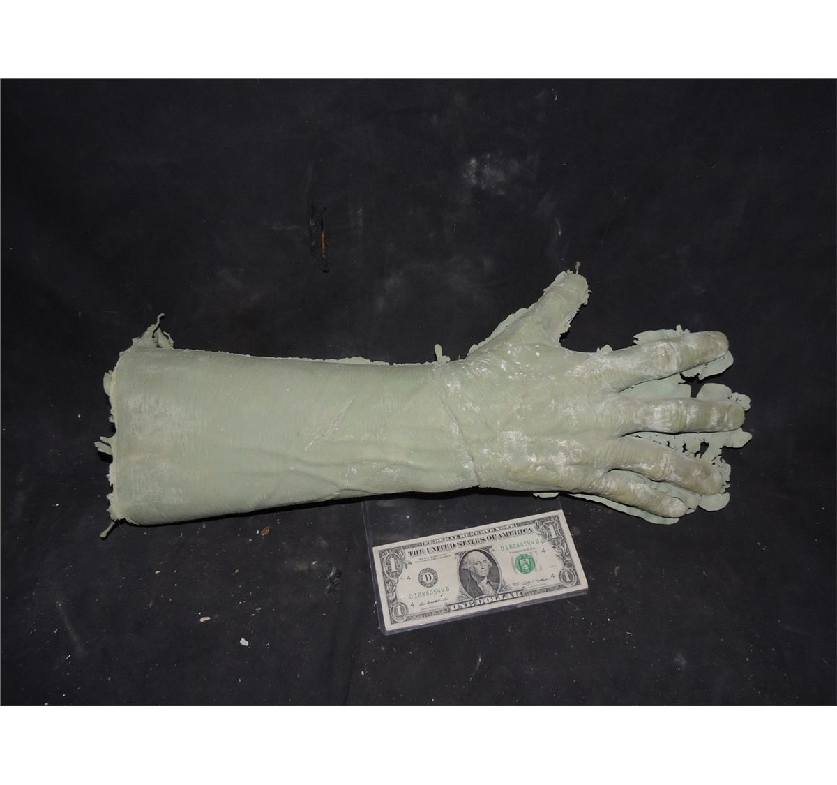 This is a unused FRANKENSTEIN MONSTER costume hand. Finished examples were worn by actors at UNIVERSAL STUDIOS.