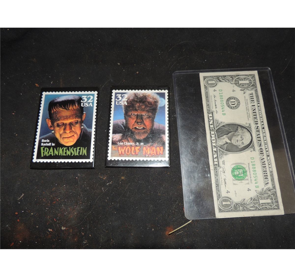 FRANKENSTEIN & WOLF MAN RARE VINTAGE POSTAGE STAMP FRIDGE MAGNET NO RESERVE!