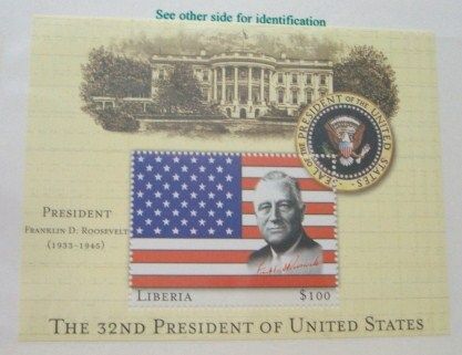 FRANKLIN D. ROOSEVELT $100 LIBERIA MYSTIC STAMP *RARE MINT S/S STAMP IN ORIGINAL PROTECTOR*!! ***Coins, Gemstones, Currency & All Items Listed in this auction - Grades, Conditions and Values are not Safe Deposit Coins LLC Responsibilty. Grades, Condition and Values are determined by Consigner(s) & Buyers ONLY***