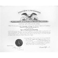 <b>259. FRANKLIN D. ROOSEVELT</b> Partly-printed D.S. as President, 1p. folio, Washington, Nov. 4, 1939, an ornate appointment of Carroll L. Wilson of Massachusetts as Special Assistant to the Secretary. Countersigned by <b>HARRY S. HOPKINS</b> as Secretary of Commerce. With gold-embossed Presidential seal at bottom left, boldly signed. Mounted, very good.<b> $500-700</b>