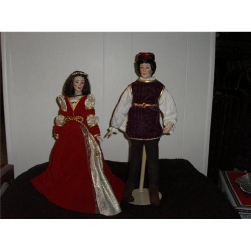 Pair of Franklin Herloom Porcelain Boy and Girl Dolls. No boxes. Included are 2 stands.