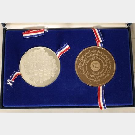 MEDAL IN STERLING SILVER WHICH IS 2000 GRAINS (APPROX. 4 1/4 OZ. ASW) AND 1 MEDAL IN SOLID BRONZE ABOUT 2000 GRAINS. BOTH PROOF WITH MATCHING SERIAL NUMBERS, IN FRANKLIN MINT PACKAGING