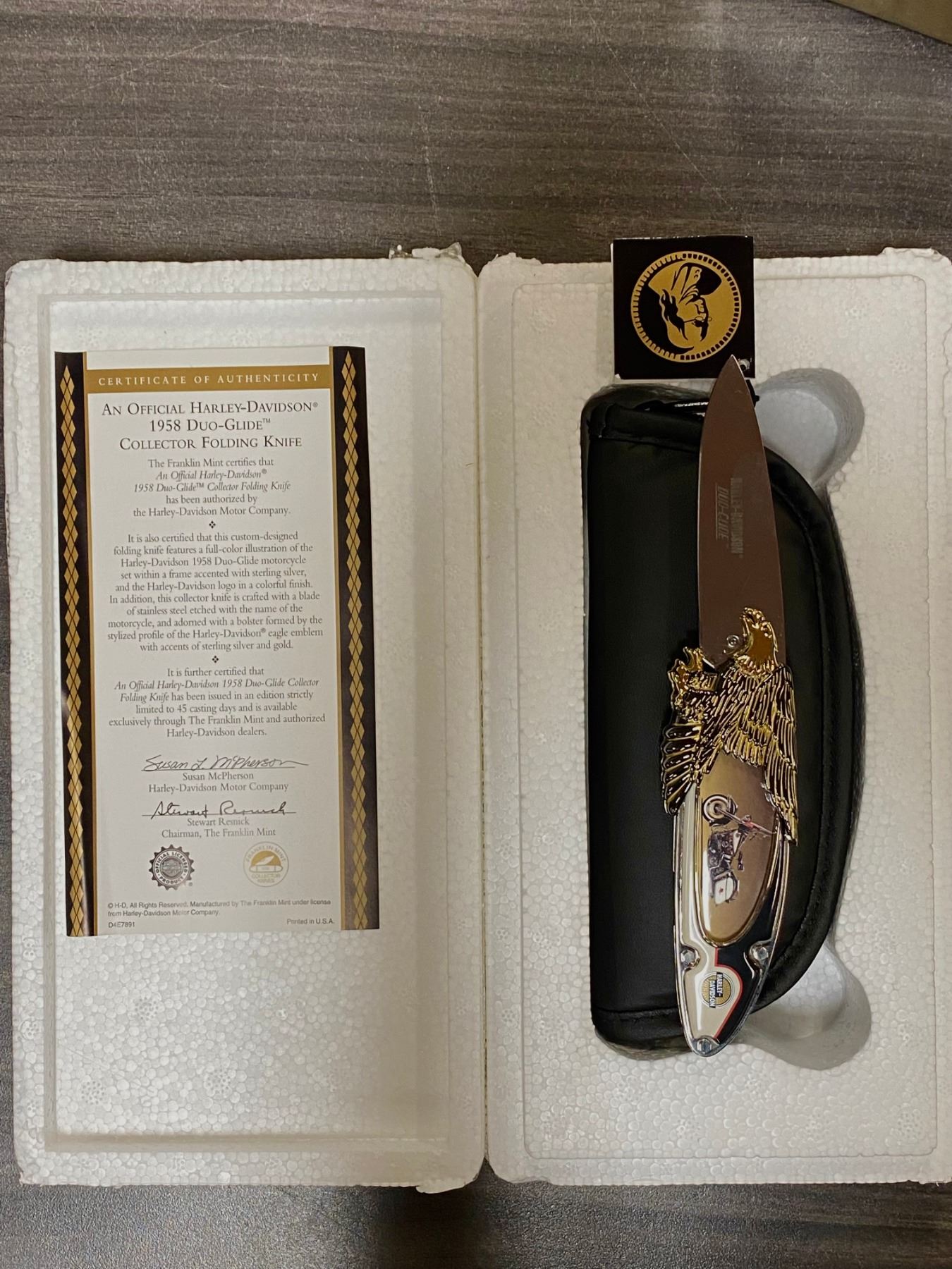 FOLDING. MODEL: 1958 DUO-GLIDE. COMES WITH A CERTIFICATE OF AUTHENTICITY IN AN ORIGINAL BOX & CASE. LIMITED EDITION. NEVER USED.