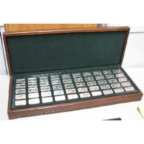 LIMITED EDITION BANKMARKED STERLING SILVER INGOT SET... by Franklin Mint; features FIFTY 1000 grain sterling silver ingots; with case and certificate;