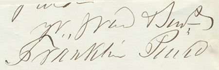 (1804-1869) Fourteenth President of the United States who initiated the Gadsden Purchase, opening up the Northwest for settlement. Bold signature and closing taken from a letter, mounted. Light showthrough at corners, otherwise very good.