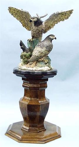FRANZ BERGMAN - (NAM GREB). A highly important cold painted bronze figural group of two eagles raised on a wood pedestal base. Vienna, circa 1920. 31" high, 57" total. 12000-15000