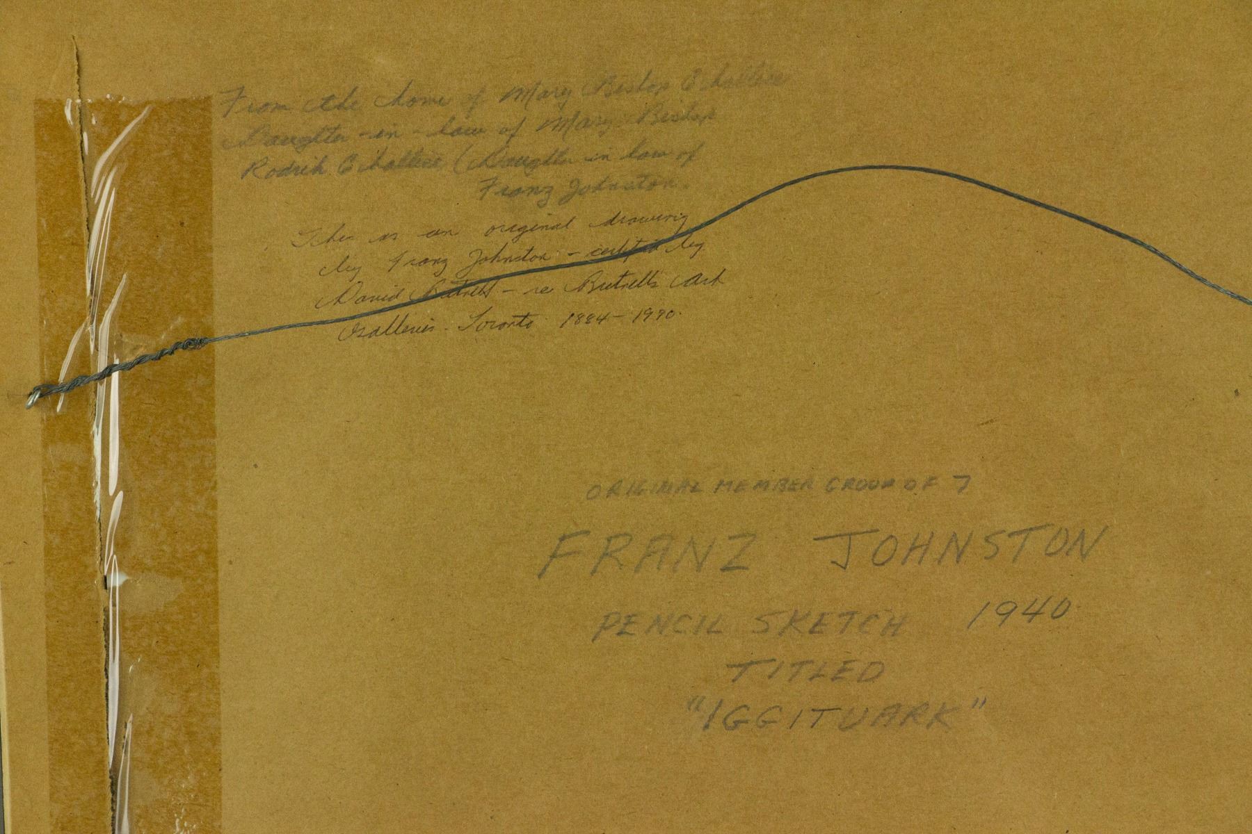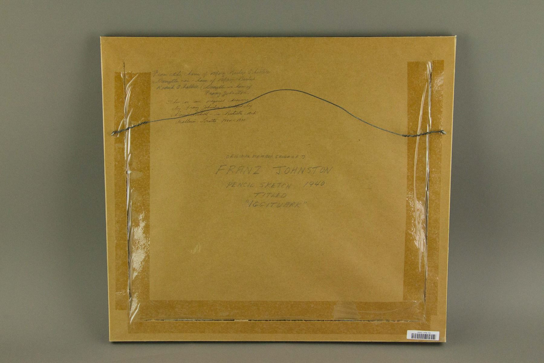 Pencil sketch on paper; with frame. Signed and attr. Franz Johnston (Canadian, 1888-1949). Written in pencil on verso. Dated 1940; 41.5 x 46.5 cm