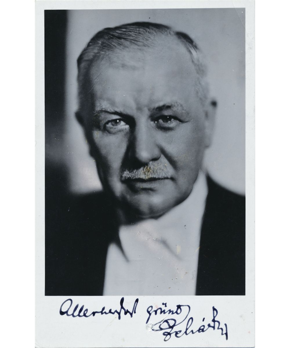 (1870-1948) Astro-Hungarian composer known for his operas, the most famous of which is "The Merry Widow". Vintage S.P. 3 1/2" x 5 1/4" b/w, a real photo postcard with a bust image, boldly signed at lower blank margin. Postally-used, a light abrasion to "L" of Lehar, very good.