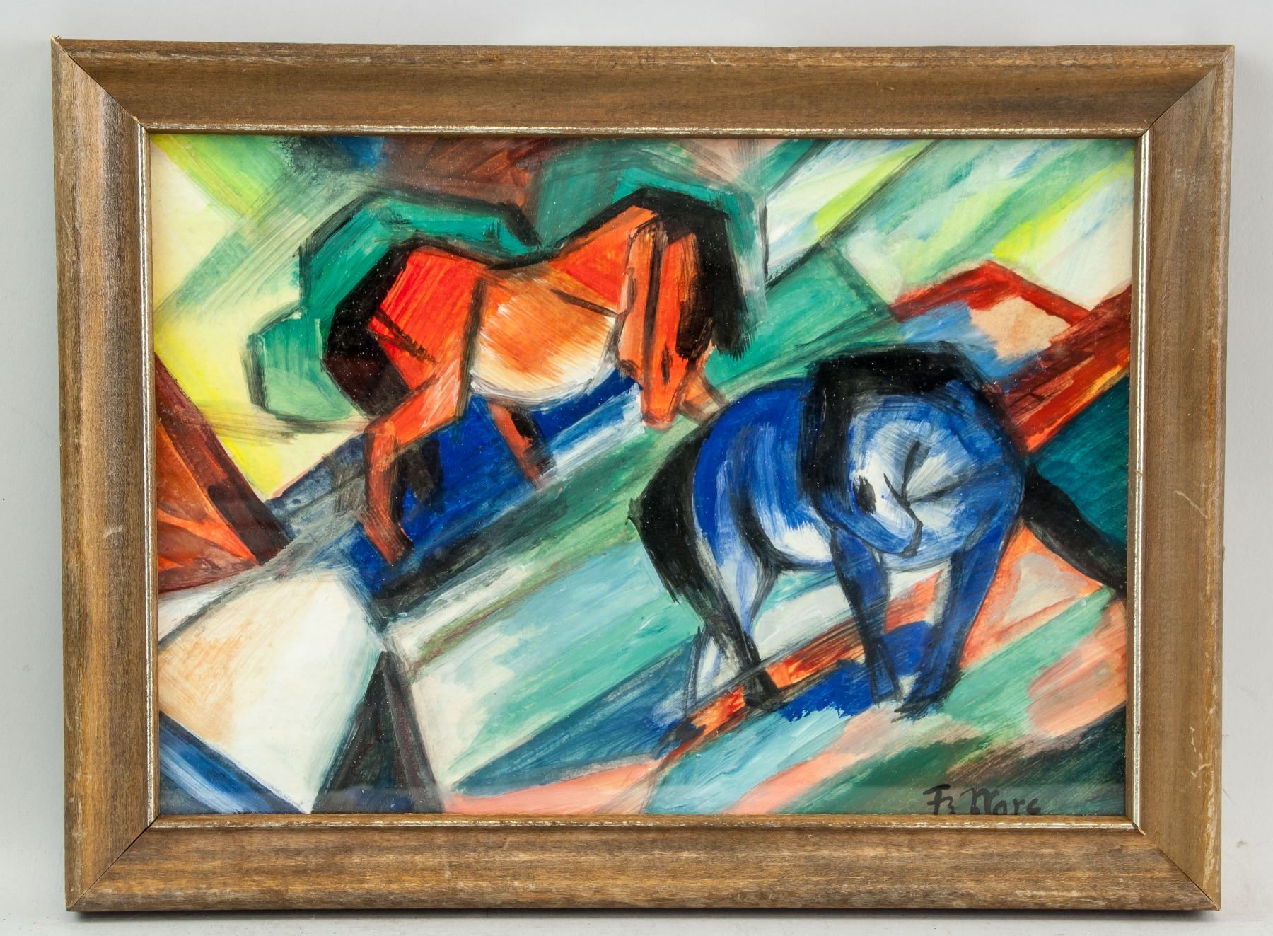 Gouache on paper, featuring cubistic horses, signed and attr. Franz Marc (German, 1880-1916) on the lower right corner, 7.7 x 11.2 in. (19.5 x 28.5 cm), Franz Marc was a German artist remembered for his vividly colored Expressionist paintings and prints. Frequently depicting cubistic animals set within landscapes, Marc strove to achieve an exalted level of experience in producing his work. Today, his works are held in the collections of The Museum of Modern Art in New York, the Art Institute of Chicago, and the National Gallery of Art in Washington, D.C., among others. PROVENANCE: Southern Ontario estate