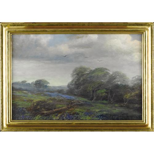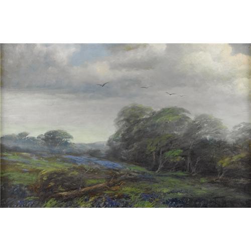 <B>FRANZ STRAHALM (1879-1935)</B></I><BR><I>South Texas,</B></I> 1933<BR>Oil on canvas<BR>20in. x 30in.<BR>Signed and dated lower right<BR>Signed and titled verso<BR><BR>Born in Vienna, Strahalm immigrated to Mexico in 1909. He subsequently moved to San Antonio in 1911. In 1919, he started his own art school in San Antonio and in 1921, he moved to Dallas where he remained until his death. Strahalm was a frequent exhibitor with the womens clubs around the state.<BR><BR>This impressionist canvas of south Texas bluebonnets displays the coastal fog that occurs on humid spring mornings.<BR><BR> <B>Condition Report:</B> Excellent condition. Period frame in excellent condition.<BR><BR><b>Shipping:</b> Requires 3rd Party Shipping (<a target="_blank" href="http://www.heritageauctions.com/common/shipping.php">view shipping information</a>)