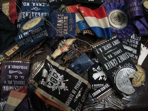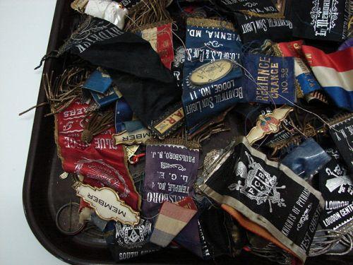 LOT OF APPROX. 20 EARLY FRATERNAL BADGES. Consists of JR. O.U.A.M., L.G.E., I.O.O.F., K. of P., P.O.S. of A., G.A.R., I.O. of G.S. & D. of S., & I.O.G.T. badges from New York, New Jersey, Pennsylvania, New Hampshire, Delaware, and Maryland.